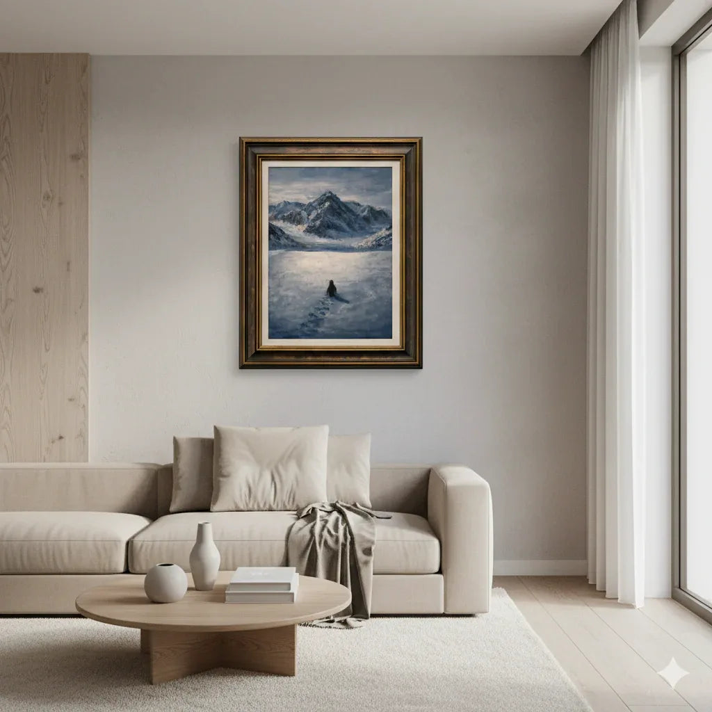 70 × 100 cm büyük boy ölçüsü, tabloyu mekânda güçlü bir odak noktası hâline getirir. İnce profilli modern çerçevesi ve müze kalitesinde paspartusu ile lüks, modern ve koleksiyonluk bir duvar sanatı parçası olarak sunulur.