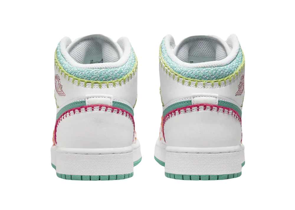 Air Jordan, Sneaker Baker'da bulunan Nike Air Jordan 1 Mid Multi Knit (GS) modeliyle koleksiyonuna yeni bir parça ekliyor. WHITE/WASHED TEAL/RUSH PINK/RUSH ORANGE tonlarındaki bu seçkin tasarım, DM6218-100 ürün koduyla sınırlı sayıda üretildi.
