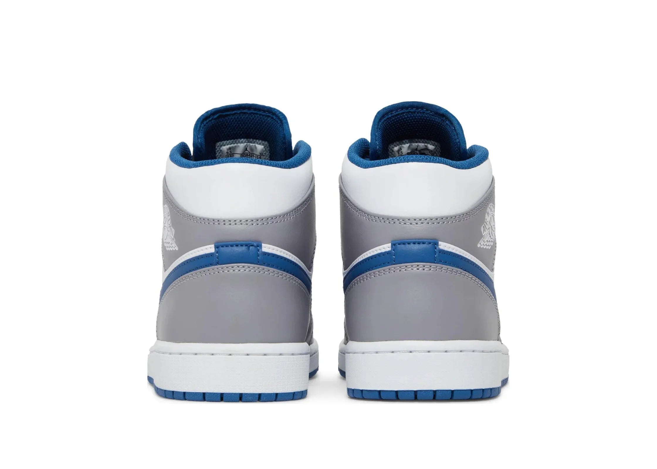 Air Jordan 1 Mid True Blue, çimento grisi, beyaz ve gerçek mavi tonlarının mükemmel bir uyumla bir araya geldiği şık bir spor ayakkabıdır. Bu model, ikonik tasarımı ve yüksek kaliteli malzemeleriyle dikkat çekmektedir.
