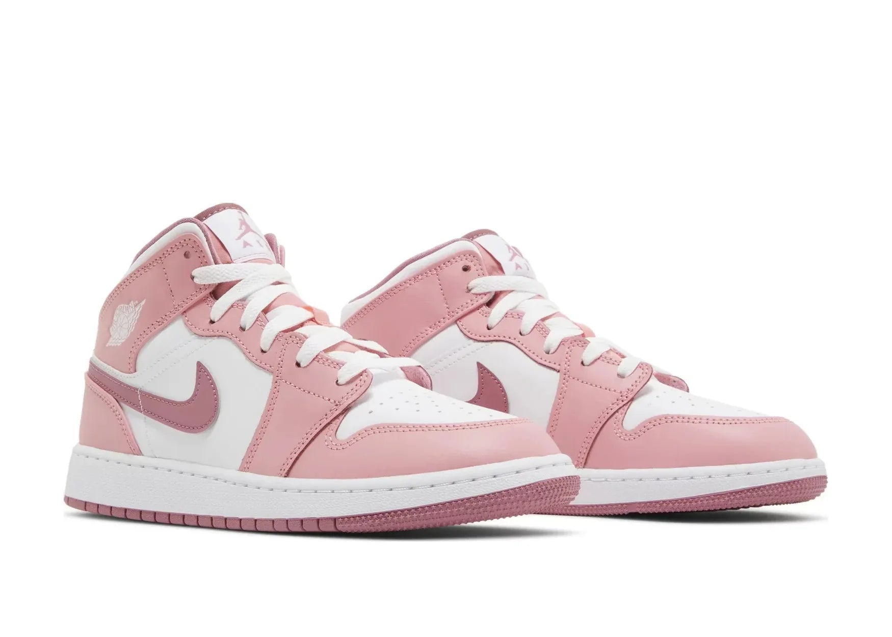 Nike Air Jordan 1 Mid Valentines Day (2023) (GS) modeli, Sneaker Baker'da koleksiyonunuza katılmak üzere hazır. Bu özel tasarım, CORAL CHALK/DESERT BERRY/WHITE tonlarıyla dikkat çekiyor.