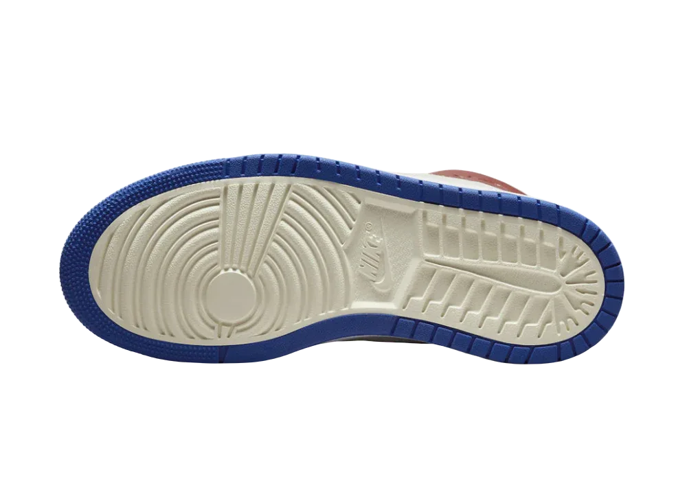 Jordan 1 Retro High, zarif bir estetik denge ile tasarlanmıştır. Beyaz deri üst kısım, file ve rugan detaylar ile bir araya gelerek modern bir görünüm oluştururken, buzlu dış taban ve mavi iç kısım tasarımı tamamlamaktadır.