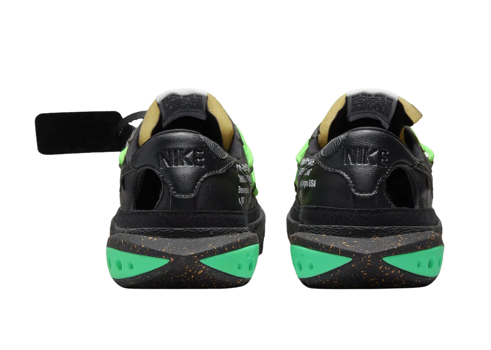 Nike Blazer Low Off-White Black Electro Green, Virgil Abloh'un tasarım estetiğini yansıtan çok disiplinli bir spor ayakkabıdır. Basketbol, kaykay ve arazi koşusu silüetlerini bir araya getirerek benzersiz bir stil sunar.