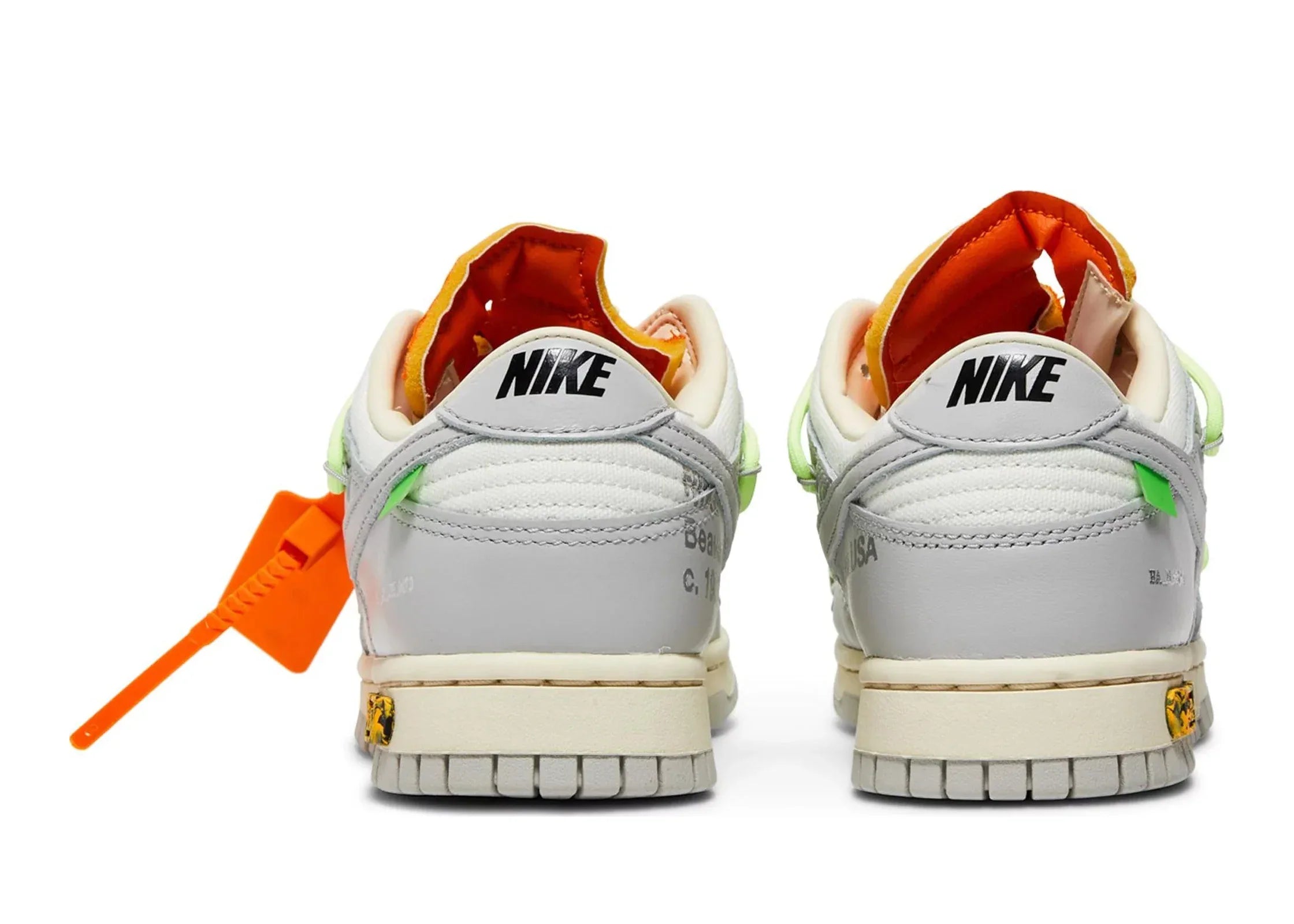Nike Dunk Low Off-White Lot 43, modern estetik anlayışıyla zarif bir görünüm sunuyor. SAIL/NEUTRAL GREY-BARELY VOLT renk kombinasyonu, şıklığı ve sadeliği bir araya getiriyor. Bu özel tasarım, hem görsel hem de dokusal olarak yüksek kaliteli malzemelerle desteklenmiştir.