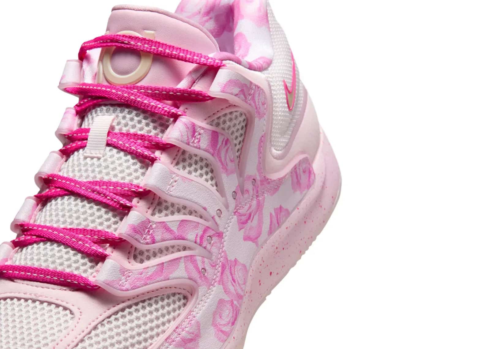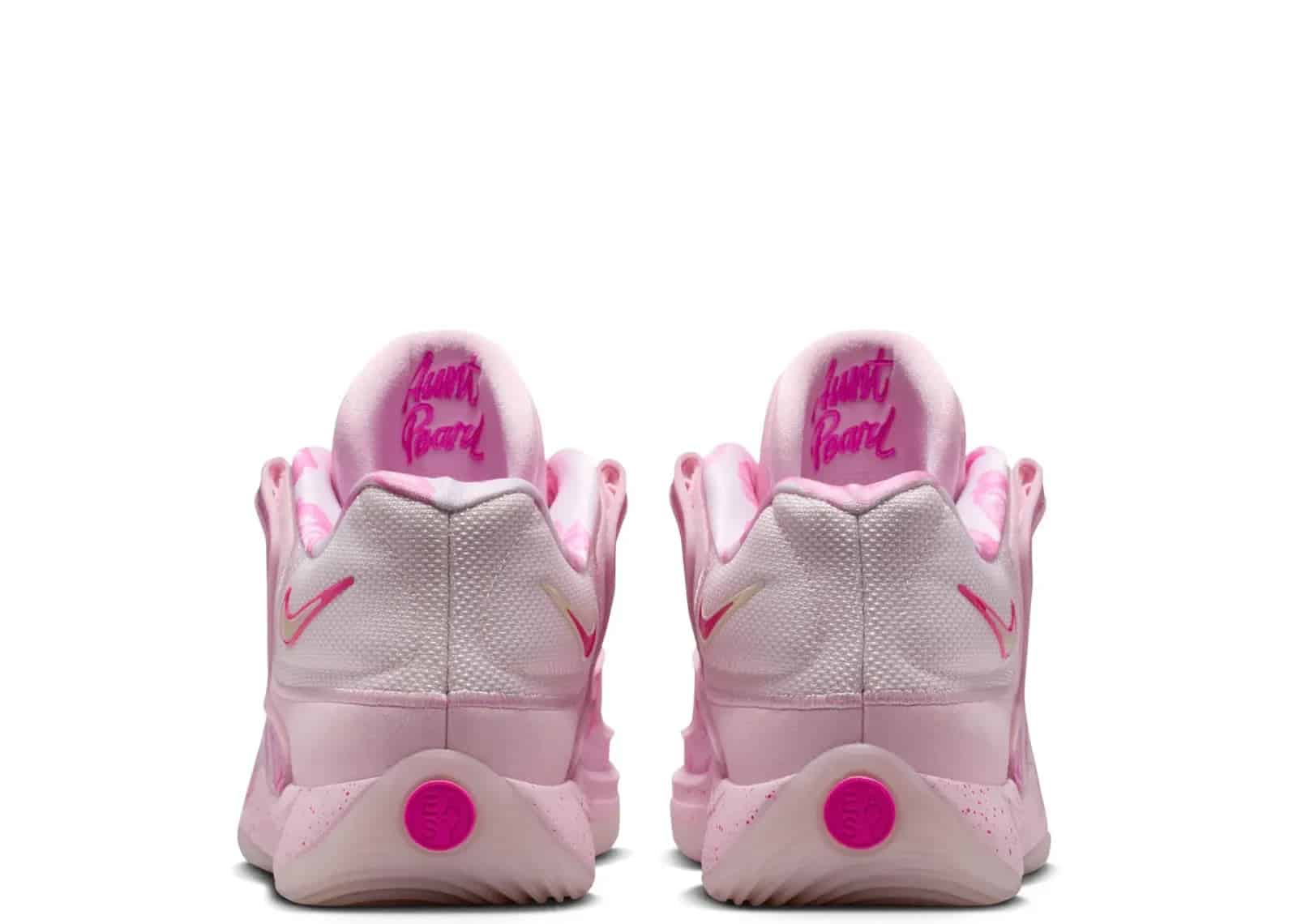 Nike KD 18 Aunt Pearl, Pearl Pink, Laser Fuchsia, Tulip Pink, Playful Pink, Pink Foam ve Glacier Blue tonlarıyla göz alıcı bir estetik sunuyor. Üstün işçilikle üretilmiş olan bu model, hem şıklığı hem de fonksiyonelliği bir araya getiriyor.