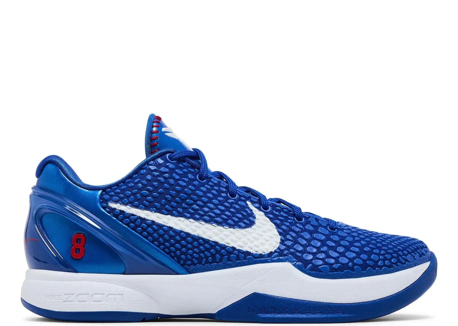 Nike Kobe 6 Protro Dodgers modeli, Sneaker Baker koleksiyonuna yeni bir soluk getiriyor. Game Royal/White-University Red tonlarındaki bu özel tasarım, sınırlı sayıda üretilmiştir.