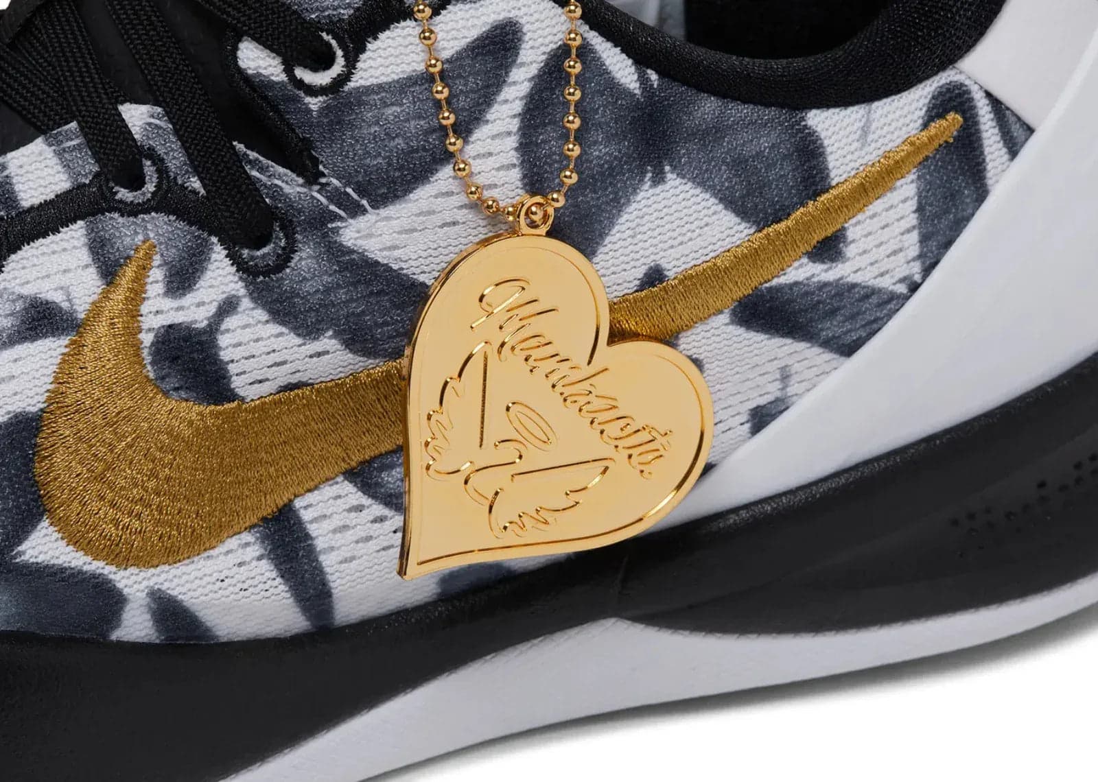 Kobe, Sneaker Baker'da bulunan Nike Kobe 8 Protro Mambacita modeliyle koleksiyonuna yeni bir parça ekliyor. White/Metallic Gold/Black tonlarındaki bu seçkin tasarım, FV6325-100 ürün koduyla sınırlı sayıda üretildi.