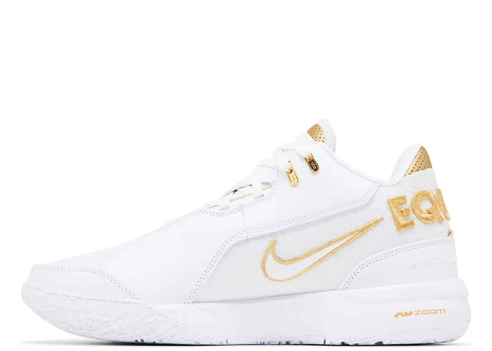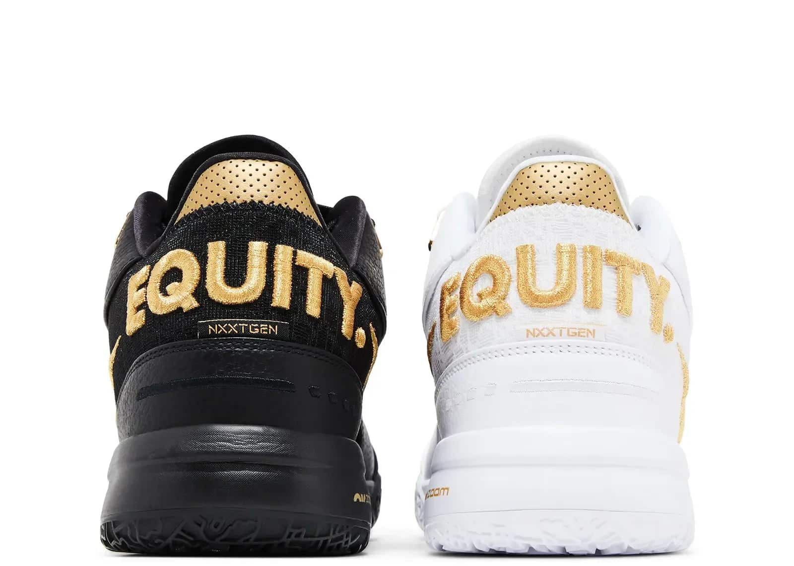 Nike, Sneaker Baker'da bulunan Nike Zoom LeBron NXXT Gen AMPD Equity modeliyle koleksiyonuna yeni bir parça ekliyor. White/Black/Gold tonlarındaki bu seçkin tasarım, FJ1566-103-FJ1567-103 ürün koduyla sınırlı sayıda üretildi.