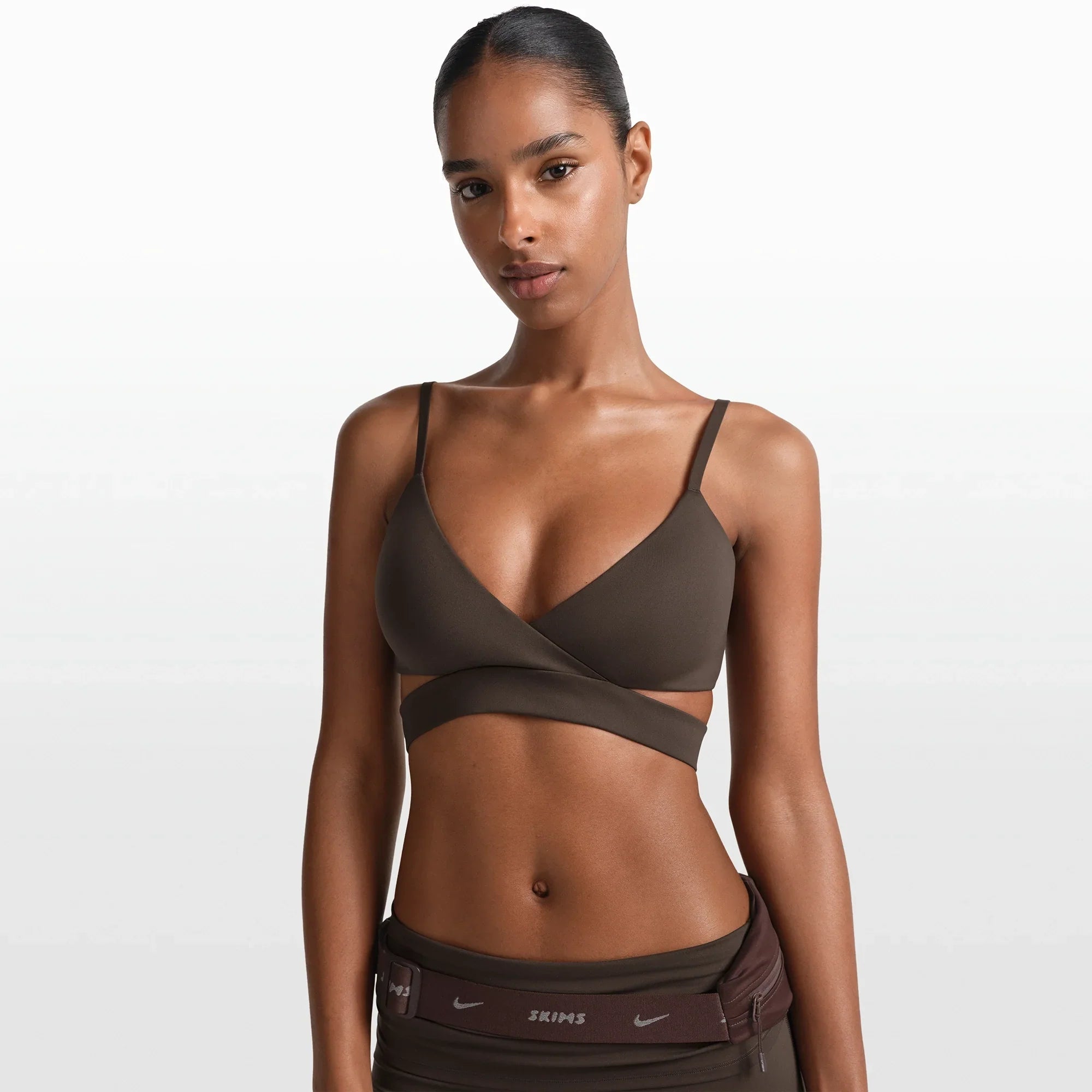 NikeSKIMS MATTE WRAP FRONT BRA | DARK SEPIA