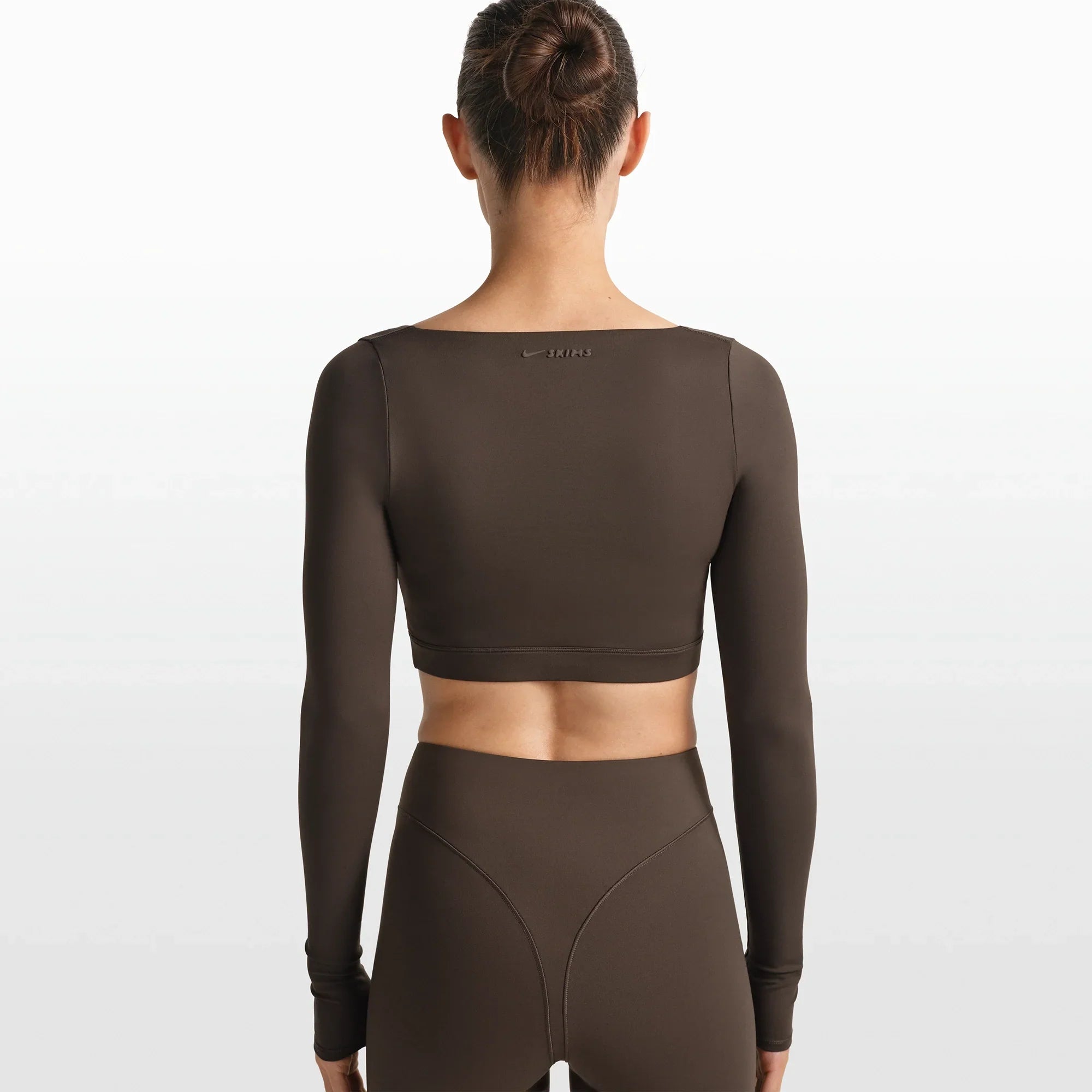 NikeSKIMS MATTE WRAP LONG SLEEVE CROPPED TOP | DARK SEPIA