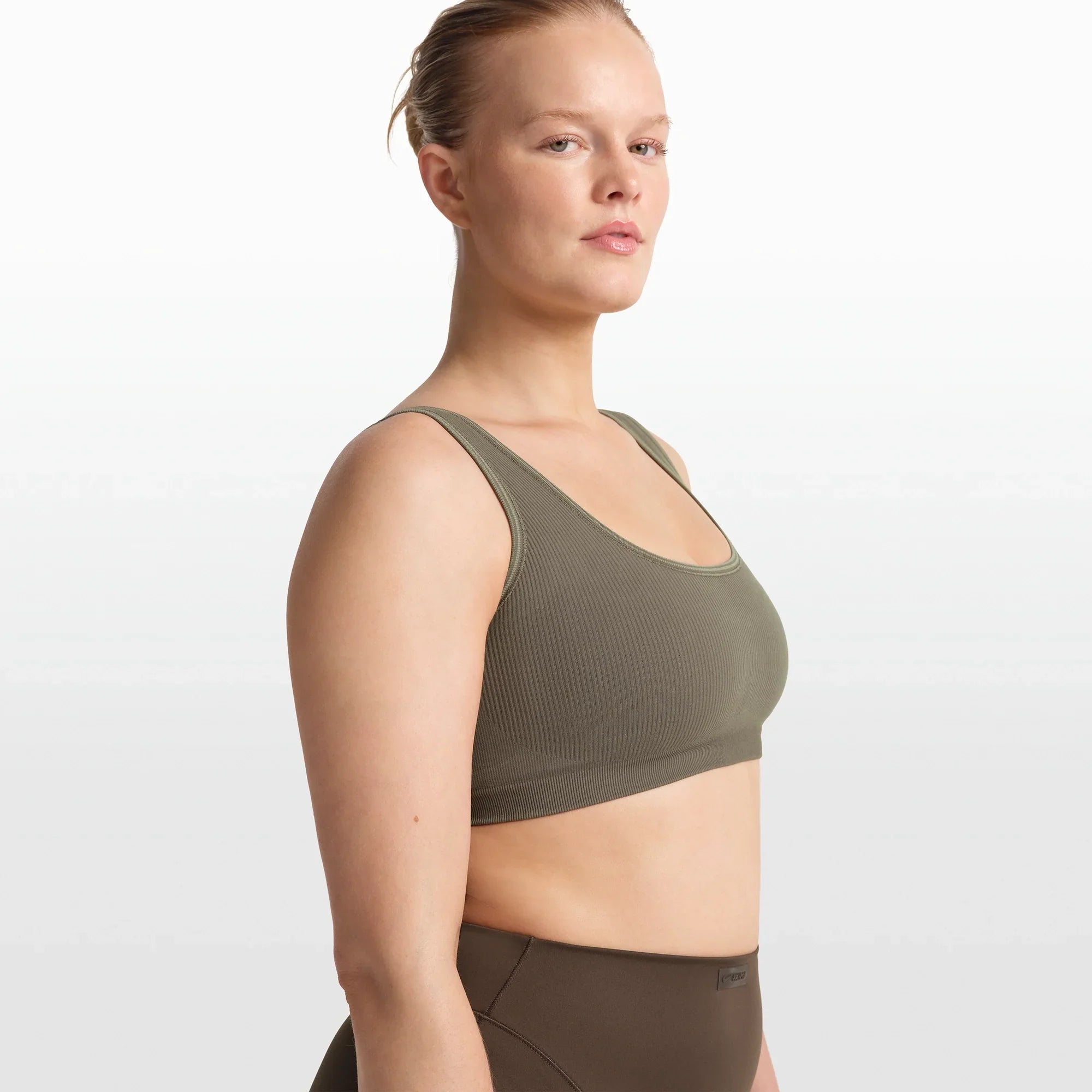 NikeSKIMS RIBBED SEAMLESS SCOOP BRA | DUSTY OAKMOSS
