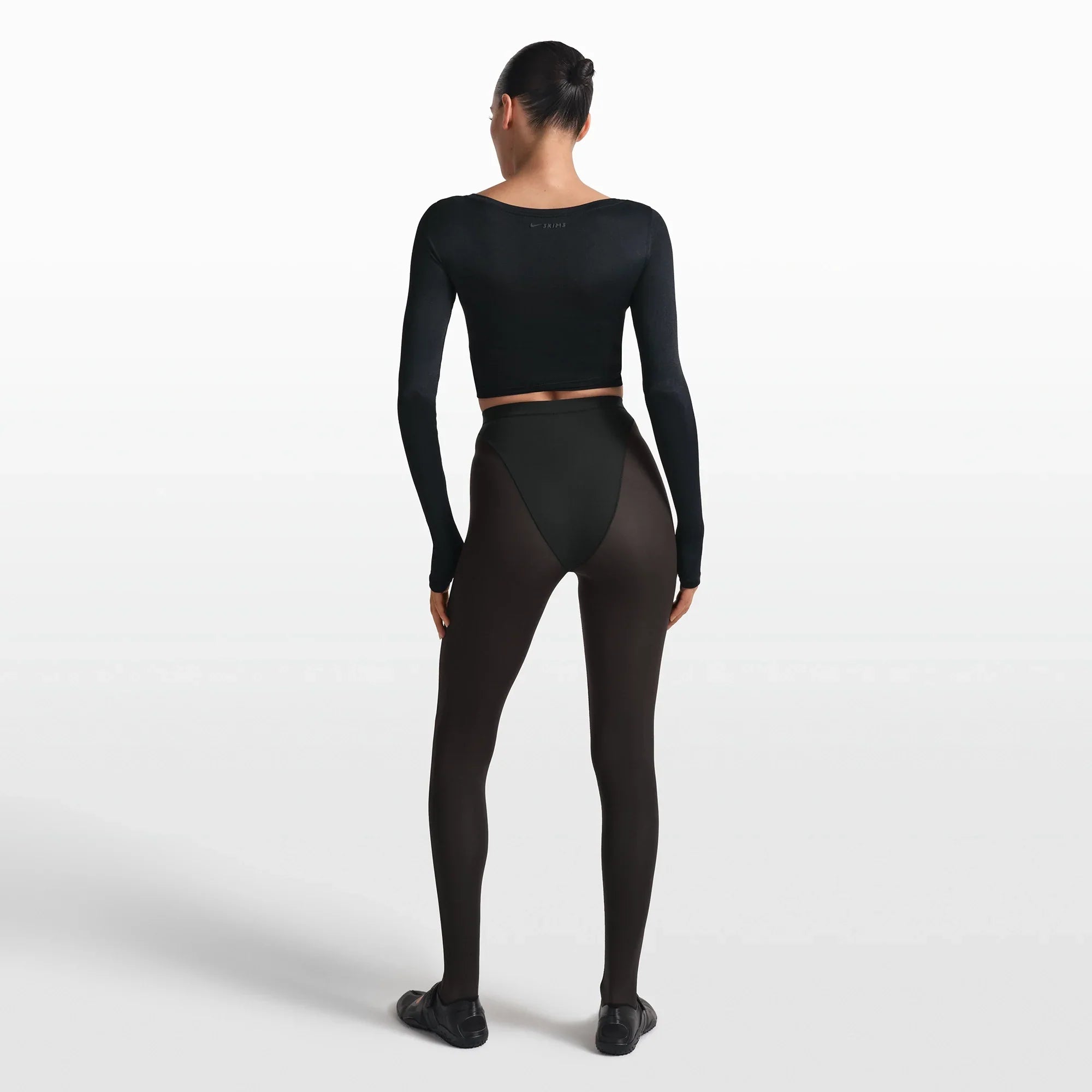NikeSKIMS STRETCH KNIT WRAP LONG SLEEVE CROPPED TOP | OBSIDIAN