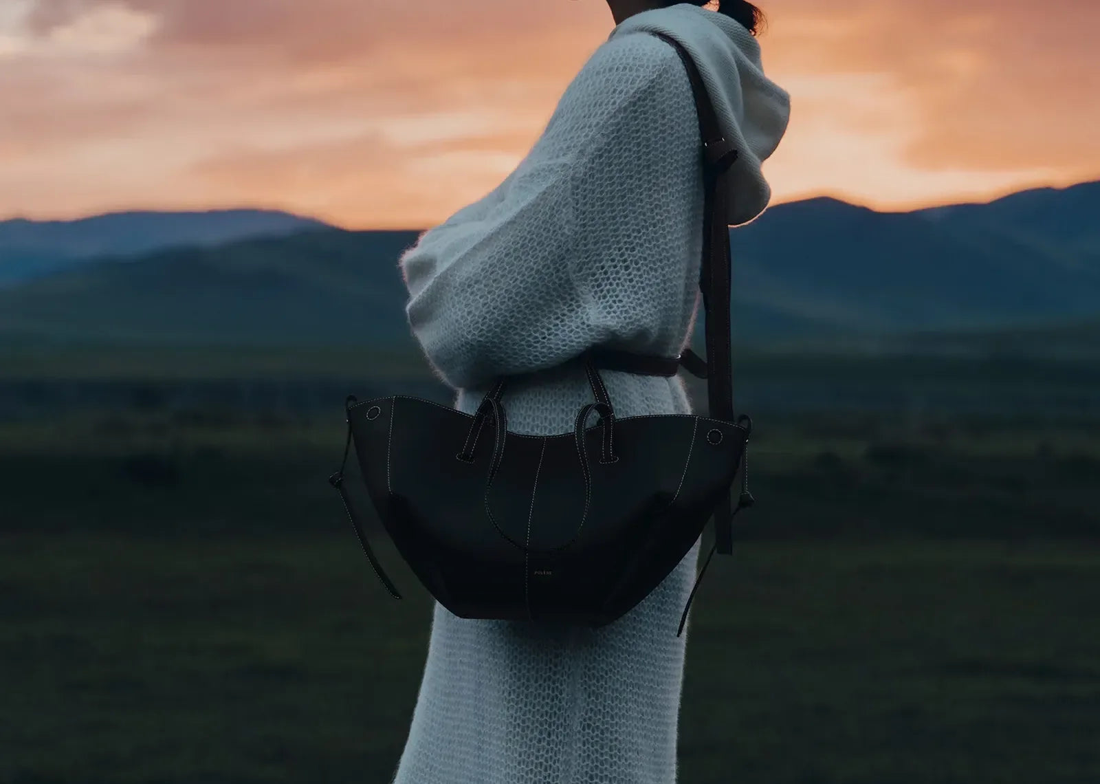 Polène Cyme Mini Edition Textured Black With Ecru Stitching