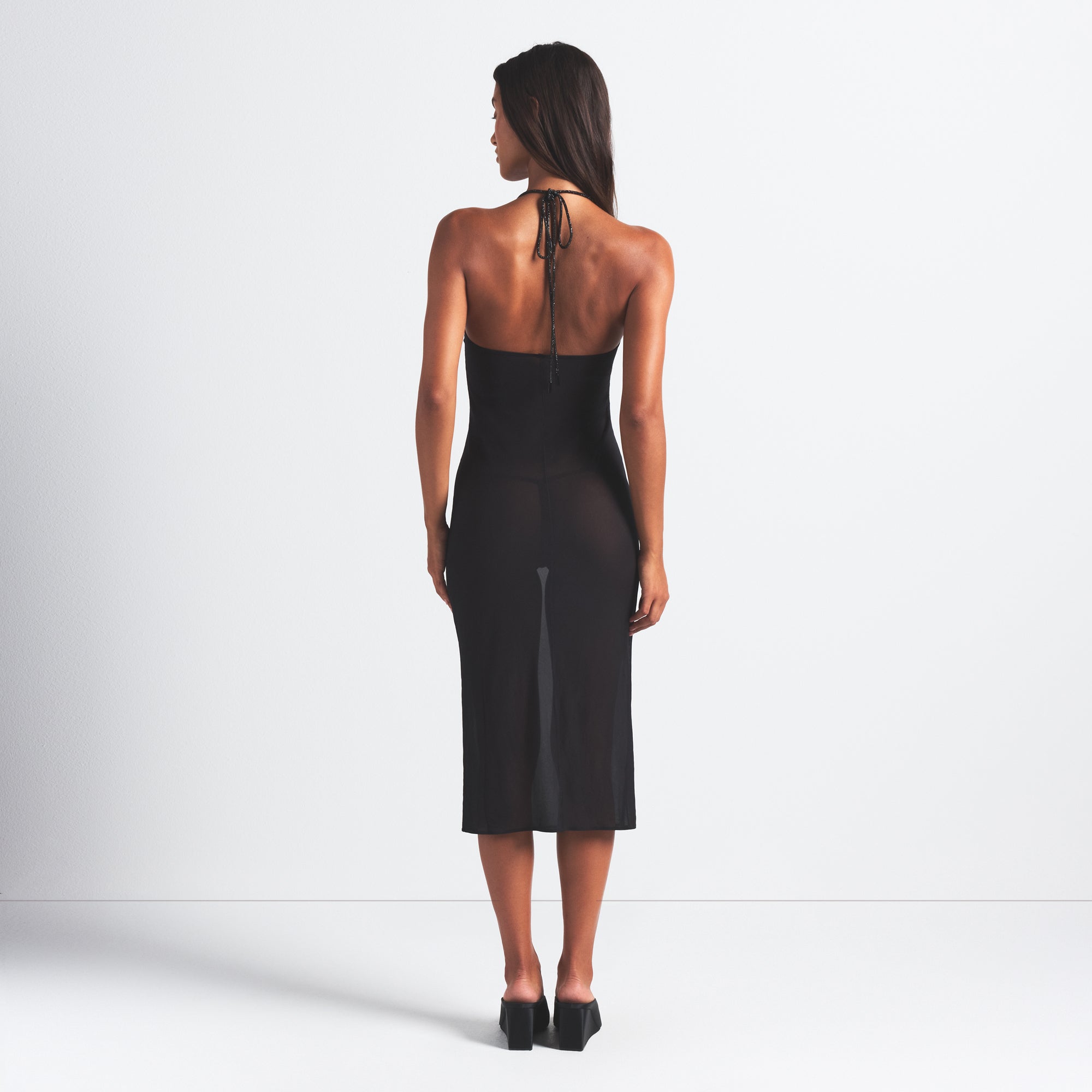 SKIMS RHINESTONE KNIT HALTER MIDI SLIP DRESS | ONYX