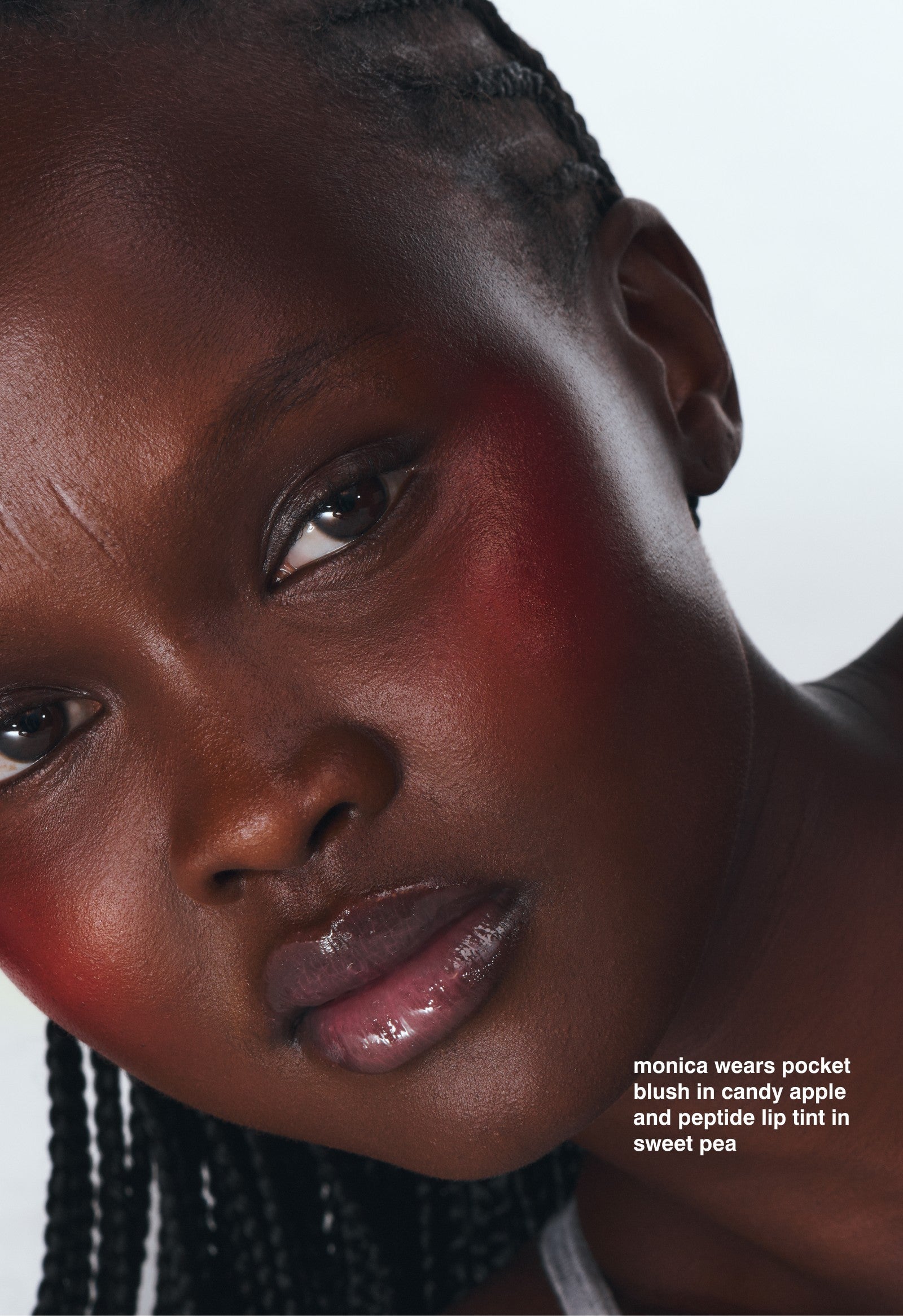 Pocket Blush, yanak ve dudaklara satenimsi, dağıtılmış bir renk vererek cildi nemlendirir ve yumuşak bir finis sağlar. Peptide Lip Shape dudaklara yumuşak bir kontur verip hacim görünümünü güçlendirirken, Peptide Lip Tint dudaklara eriyen, besleyici bir renk ve zengin parlaklık katar.