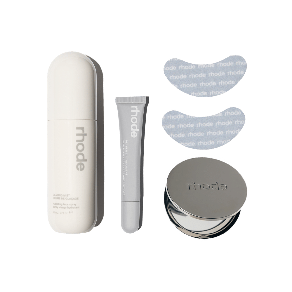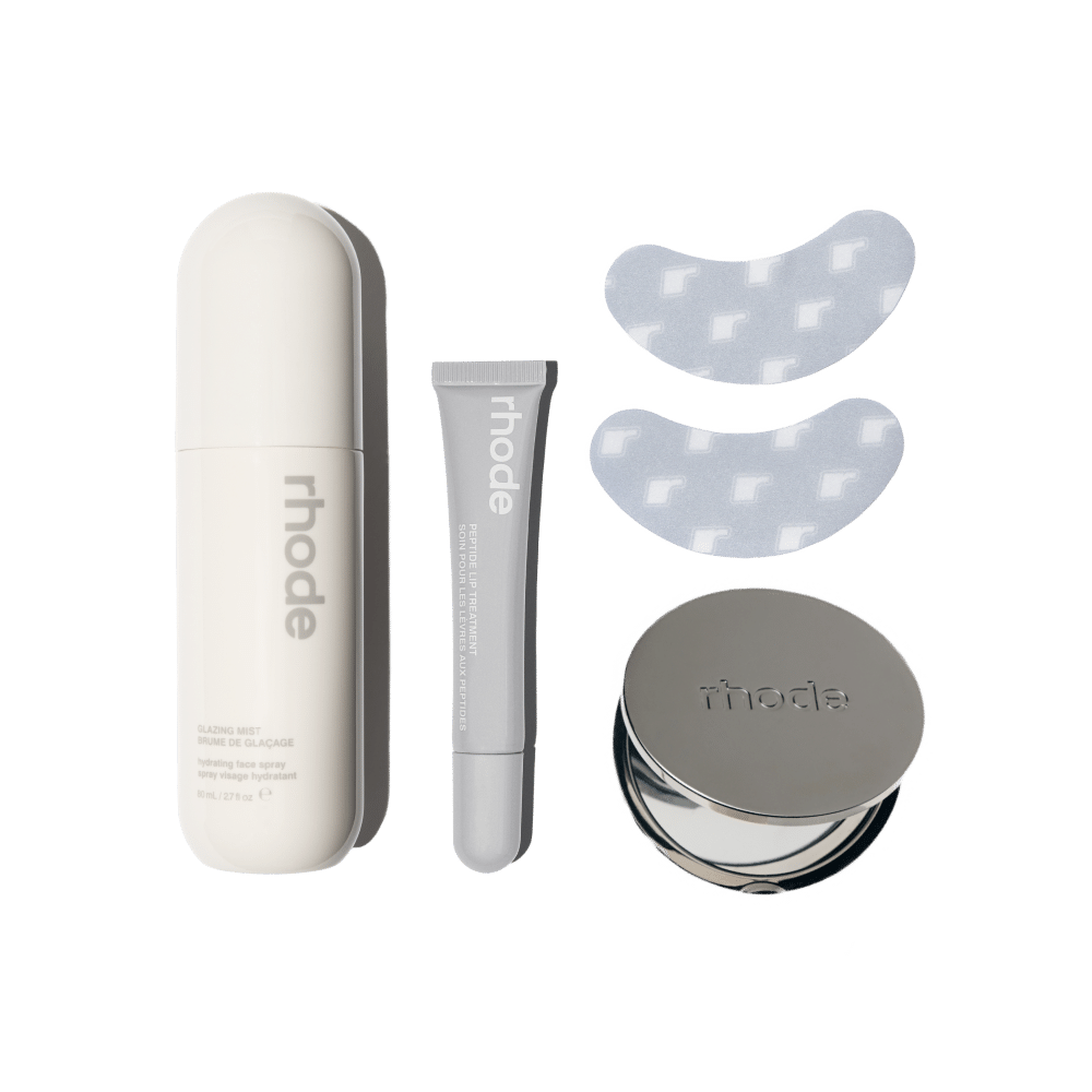 rhode'un taşıması kolay dört parçalık bakım seti ile cilt bakımınızı her yerde tazeleyin. Set; Peptide Eye Prep ile göz altındaki şişkinliği azaltmaya ve aydınlık görünüm kazandırmaya yardımcı olur, Glazing Mist ile cildi nemlendirip ferahlık verir, Peptide Lip Treatment dudakları yumuşatır ve rhode mirror pratik dokunuşlar için estetik bir ayna sunar.