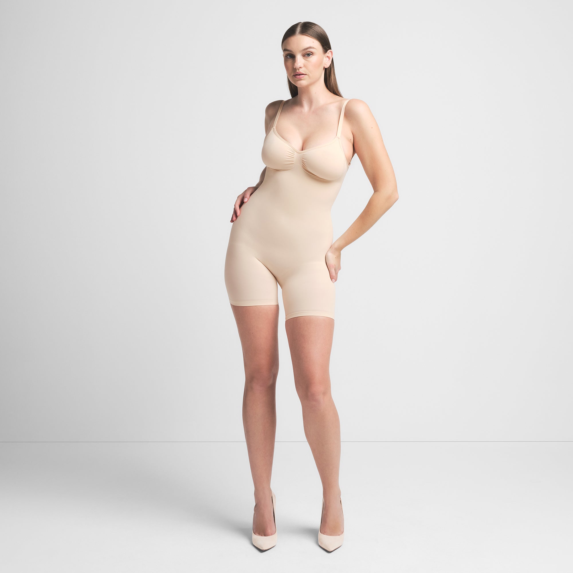 SKIMS SEAMLESS SCULPT LOW BACK MID THIGH BODYSUIT | SAND