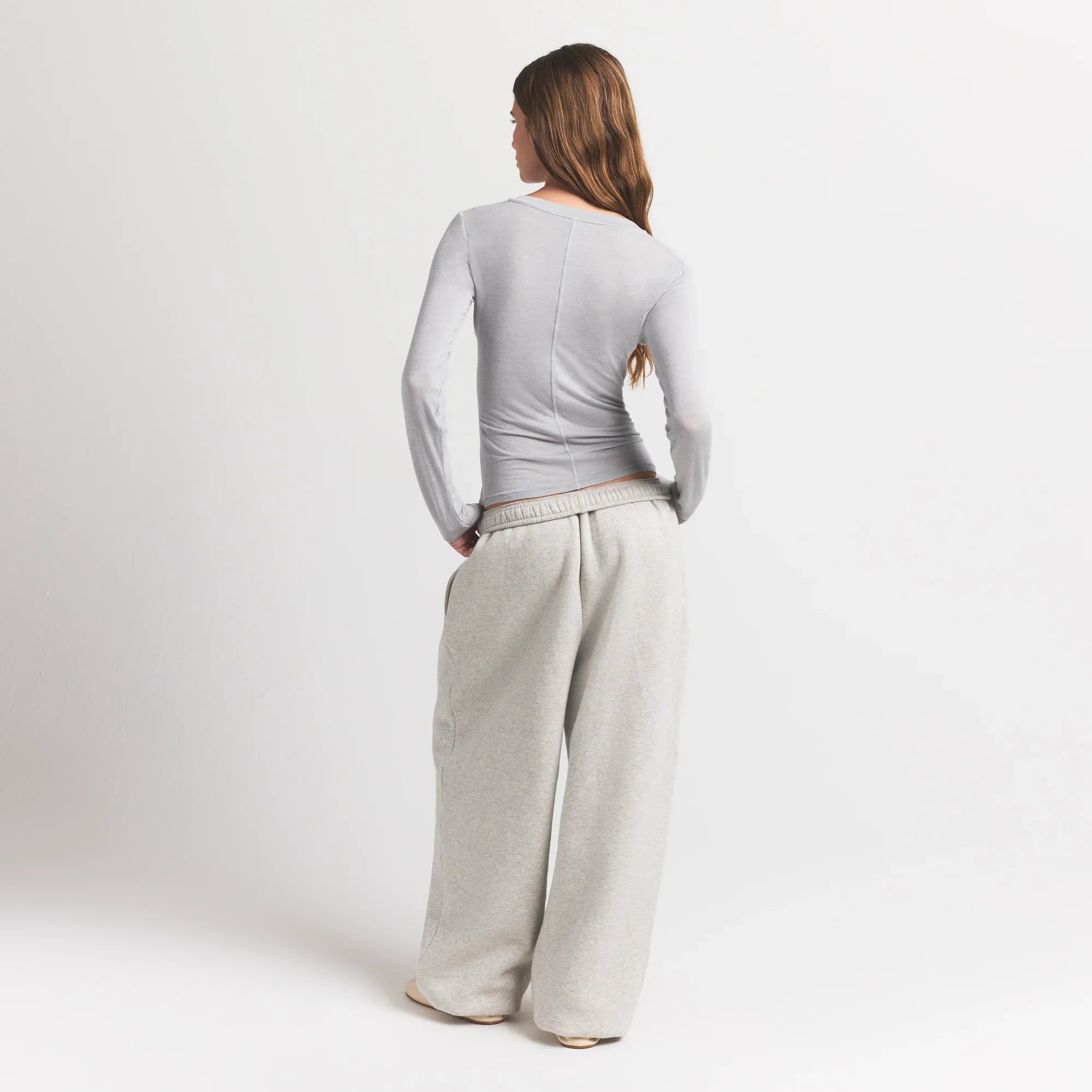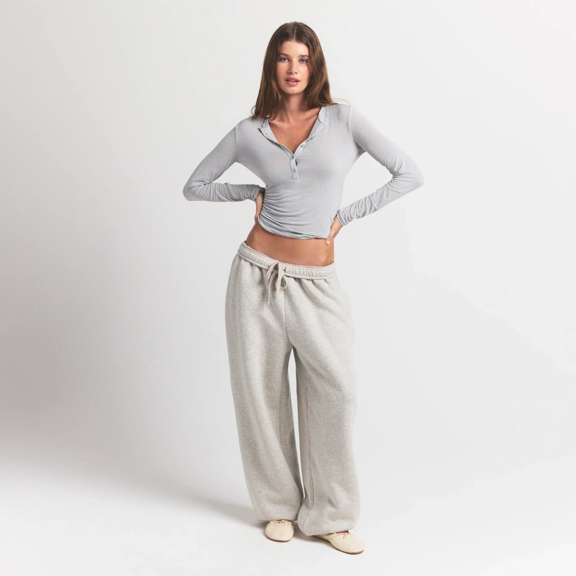 SKIMS SHEER MODAL CREWNECK HENLEY | HEATHER GREY