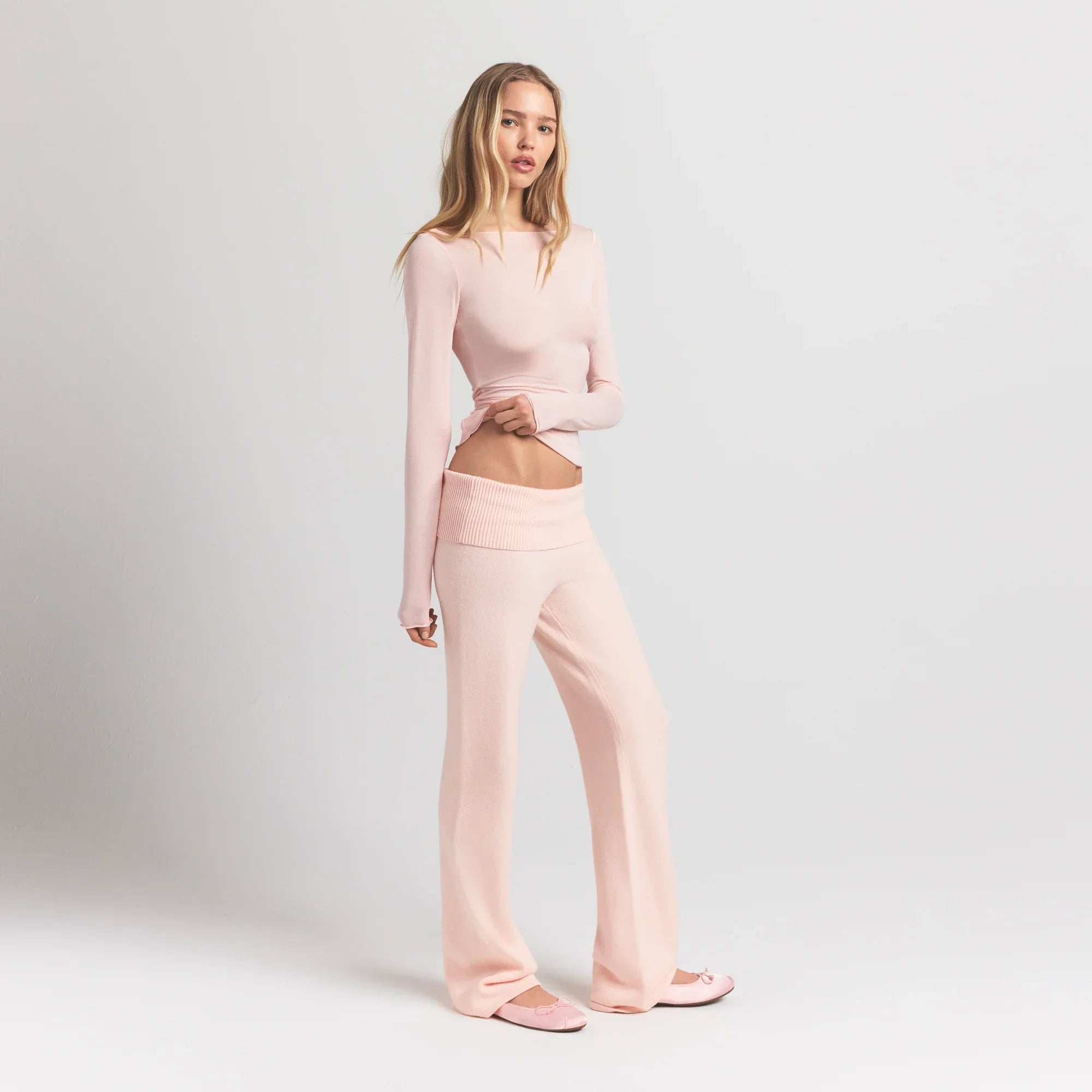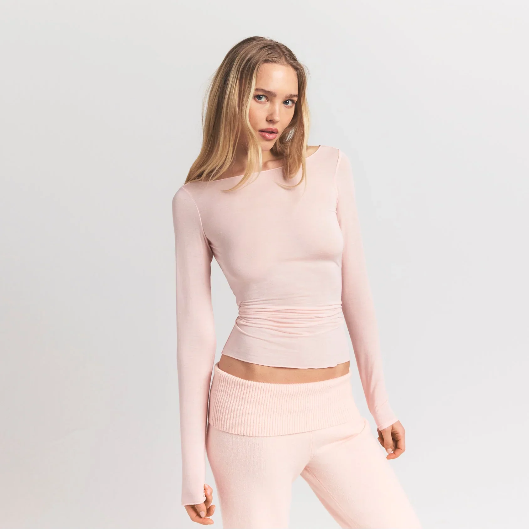 SKIMS SHEER MODAL LONG SLEEVE BOATNECK TOP | PRIMROSE