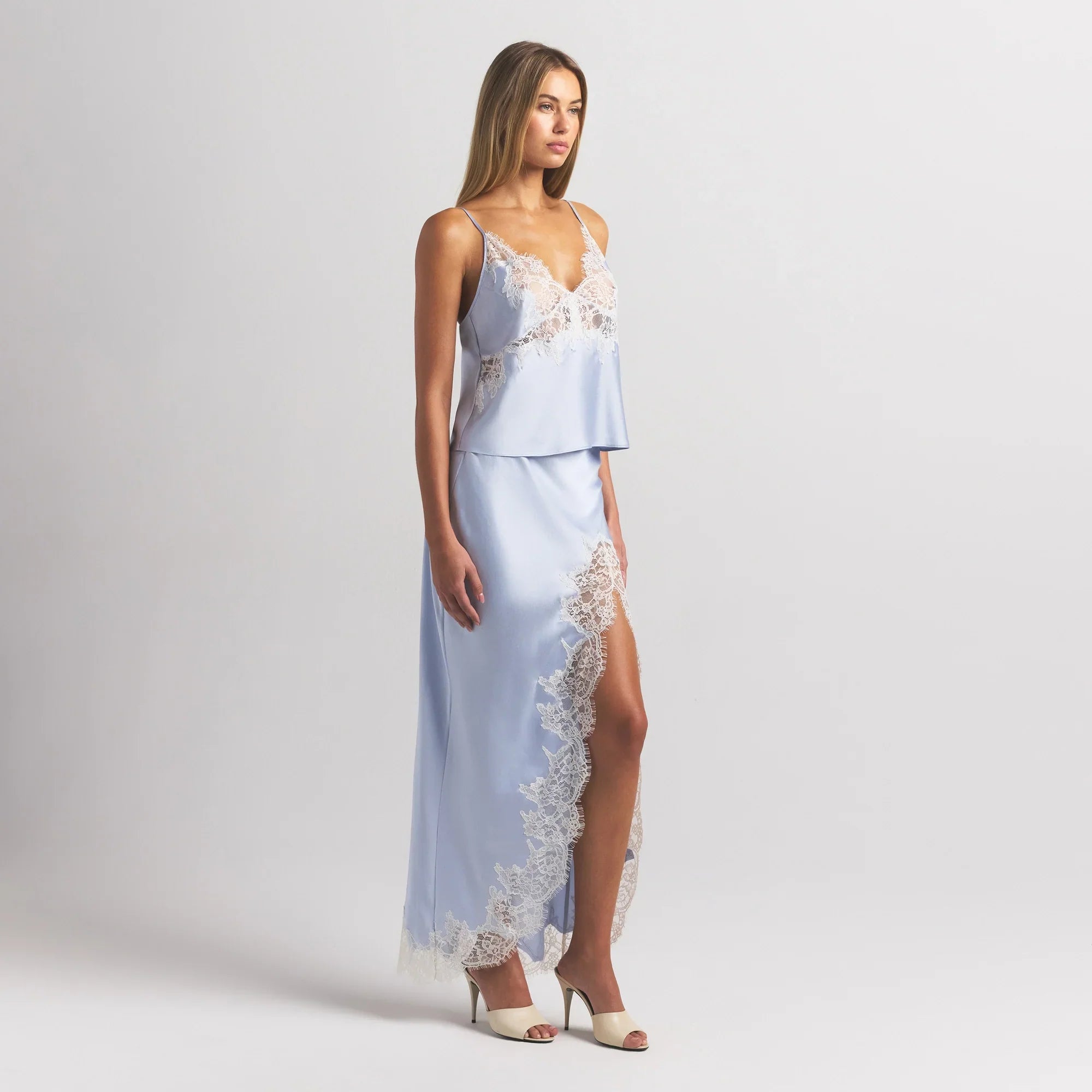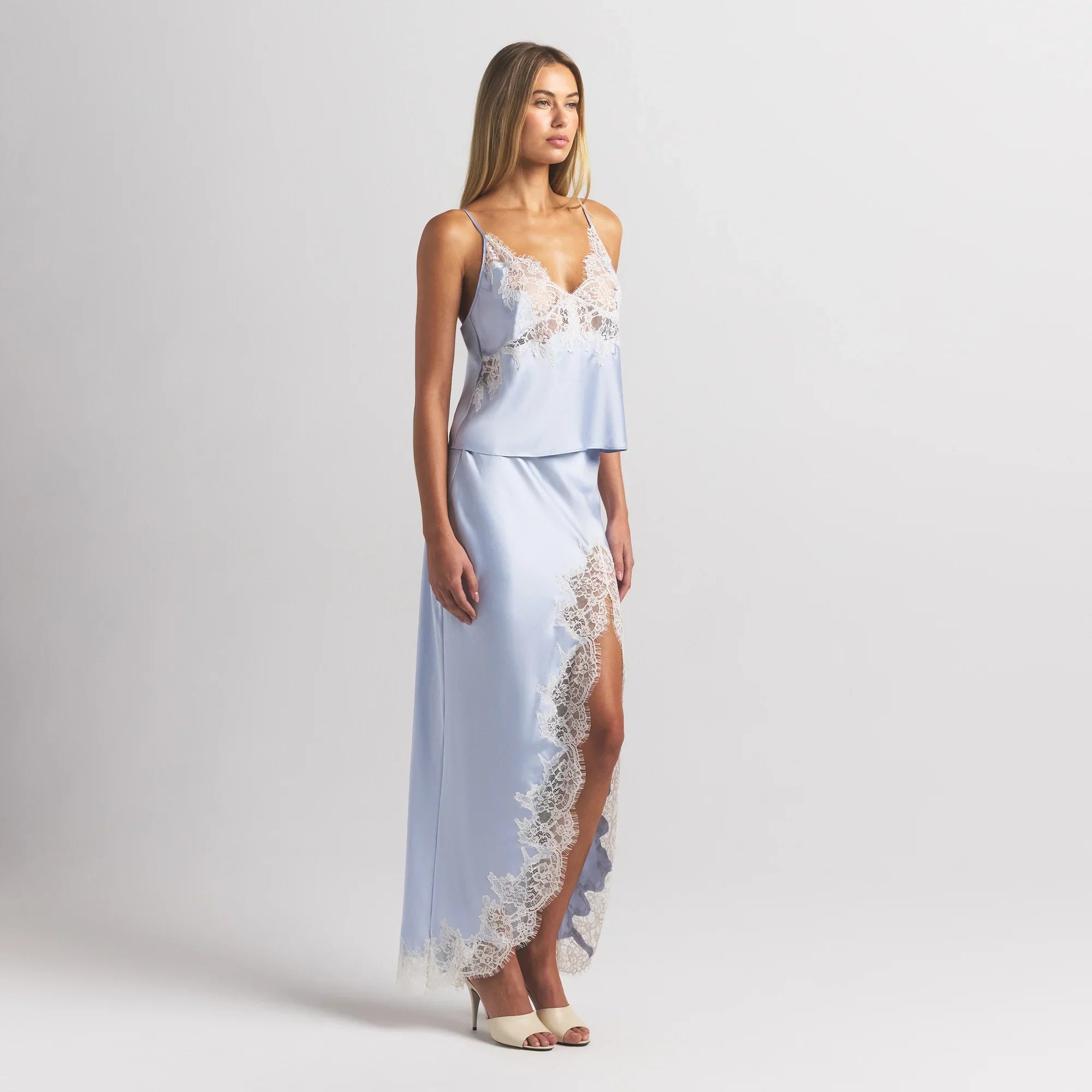 SKIMS SILK LACE CAMI | PERIWINKLE CONTRAST