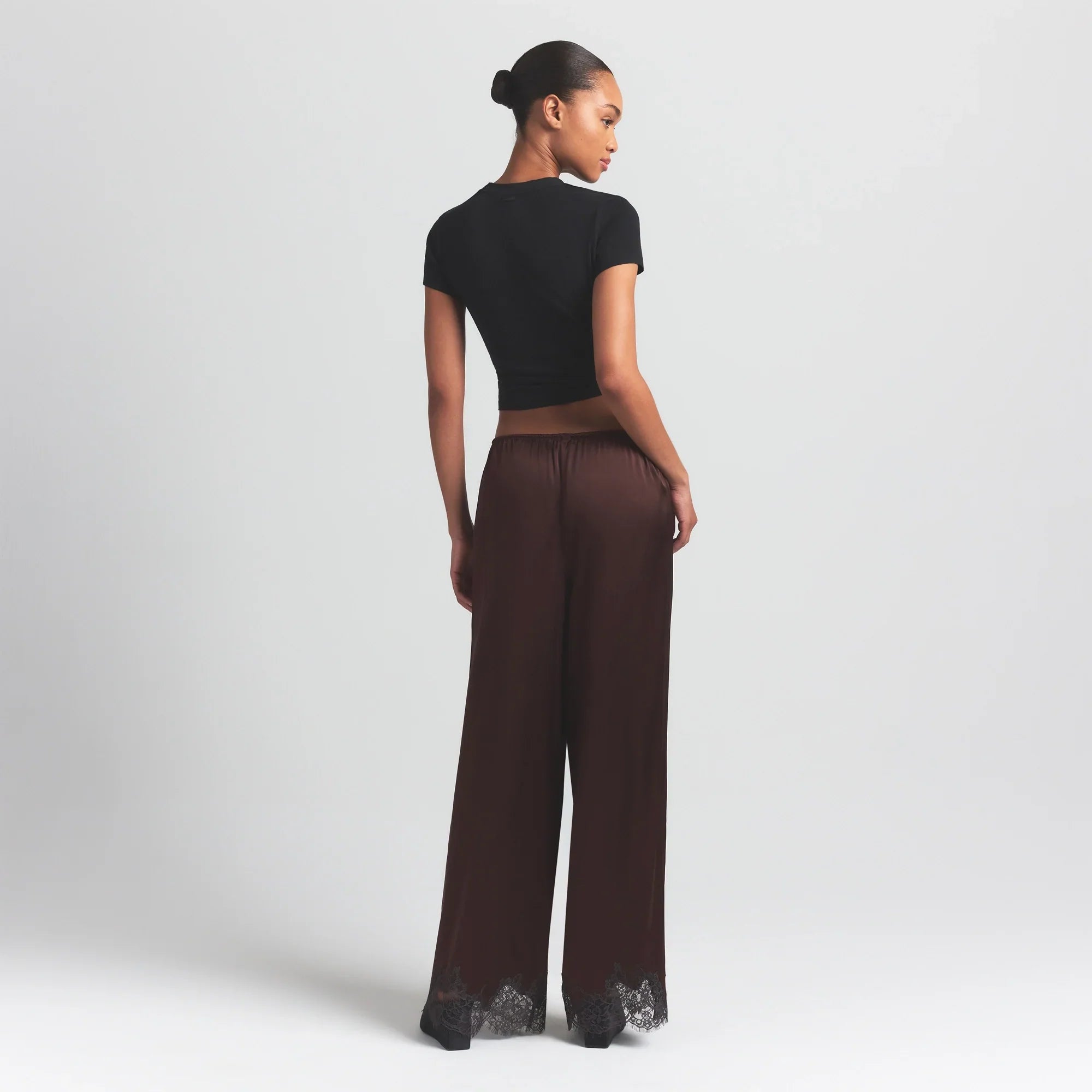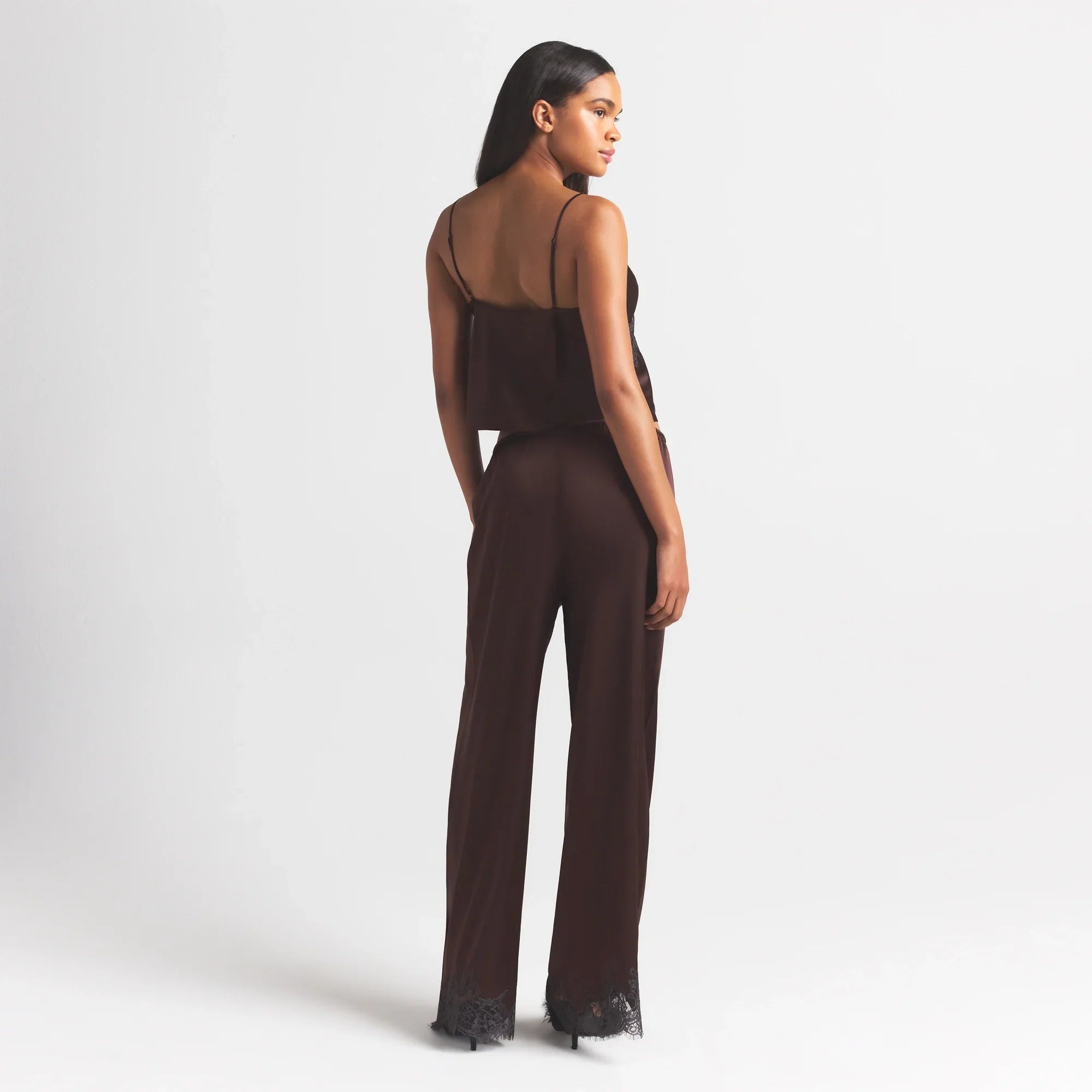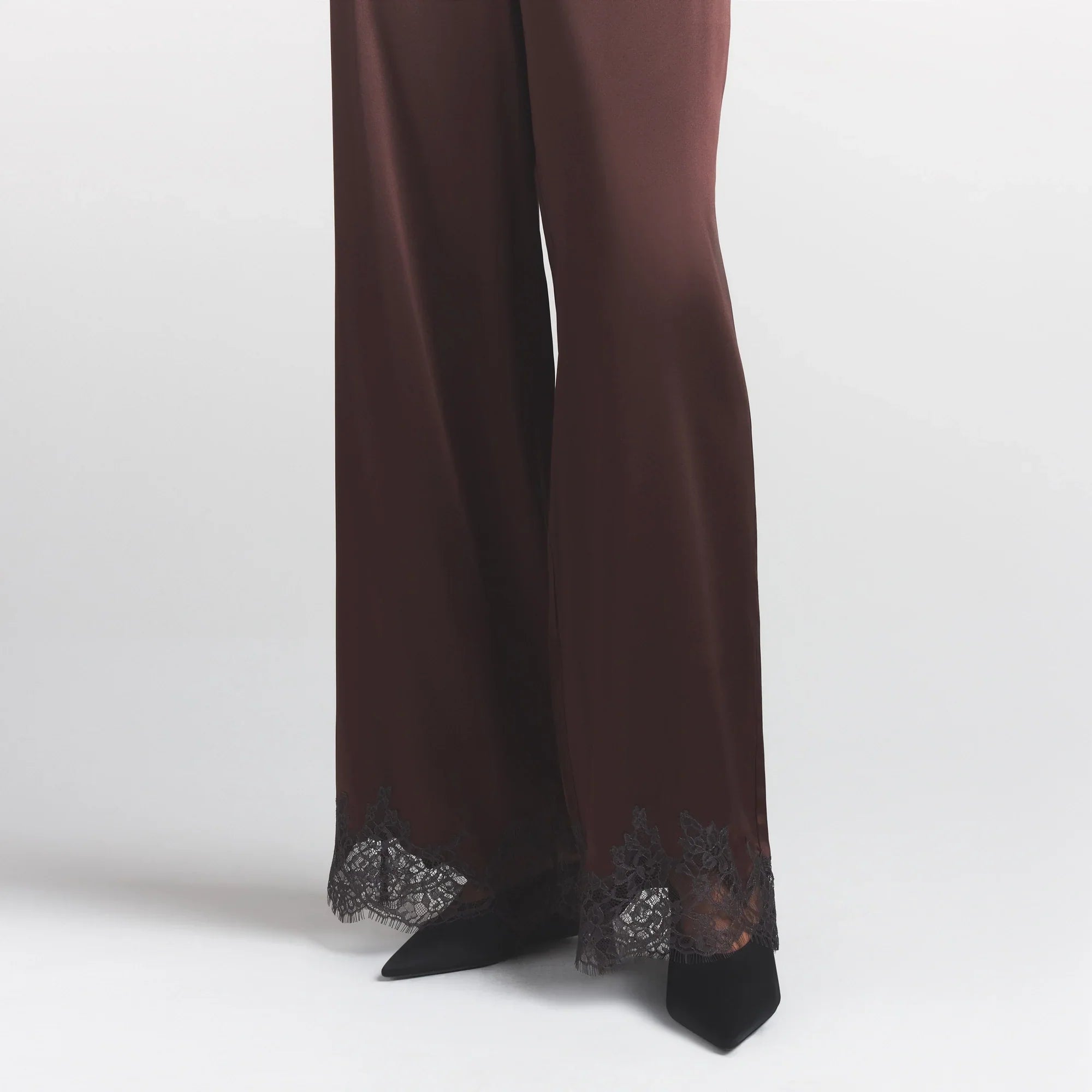 SKIMS SILK LACE STRAIGHT LEG PANT | ESPRESSO CONTRAST