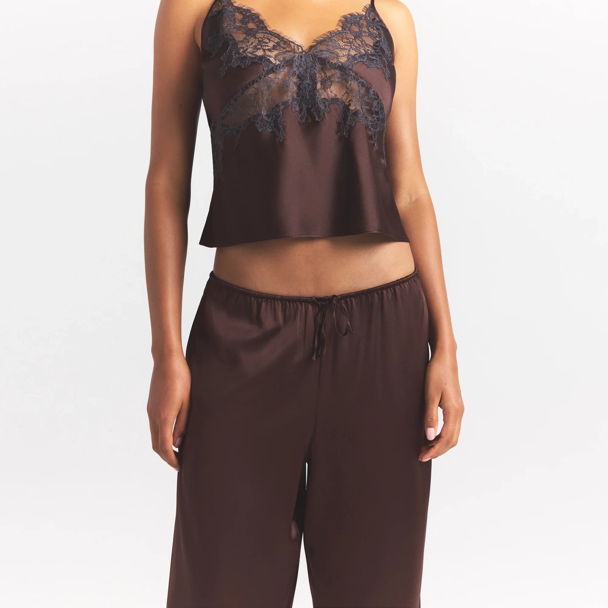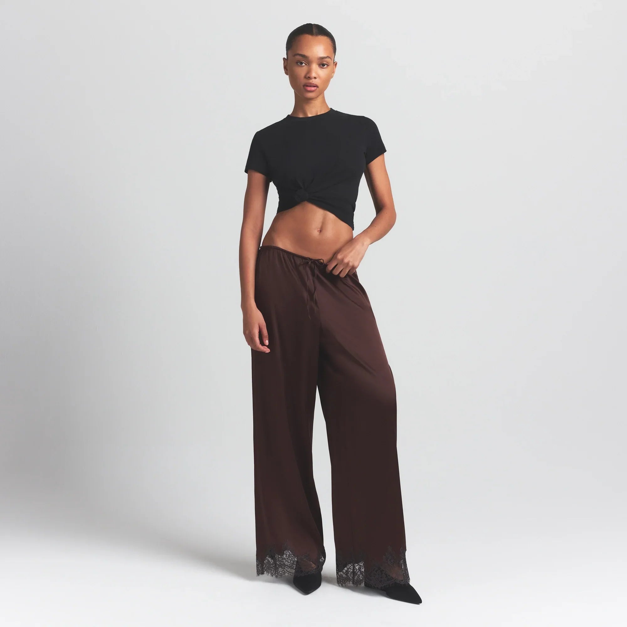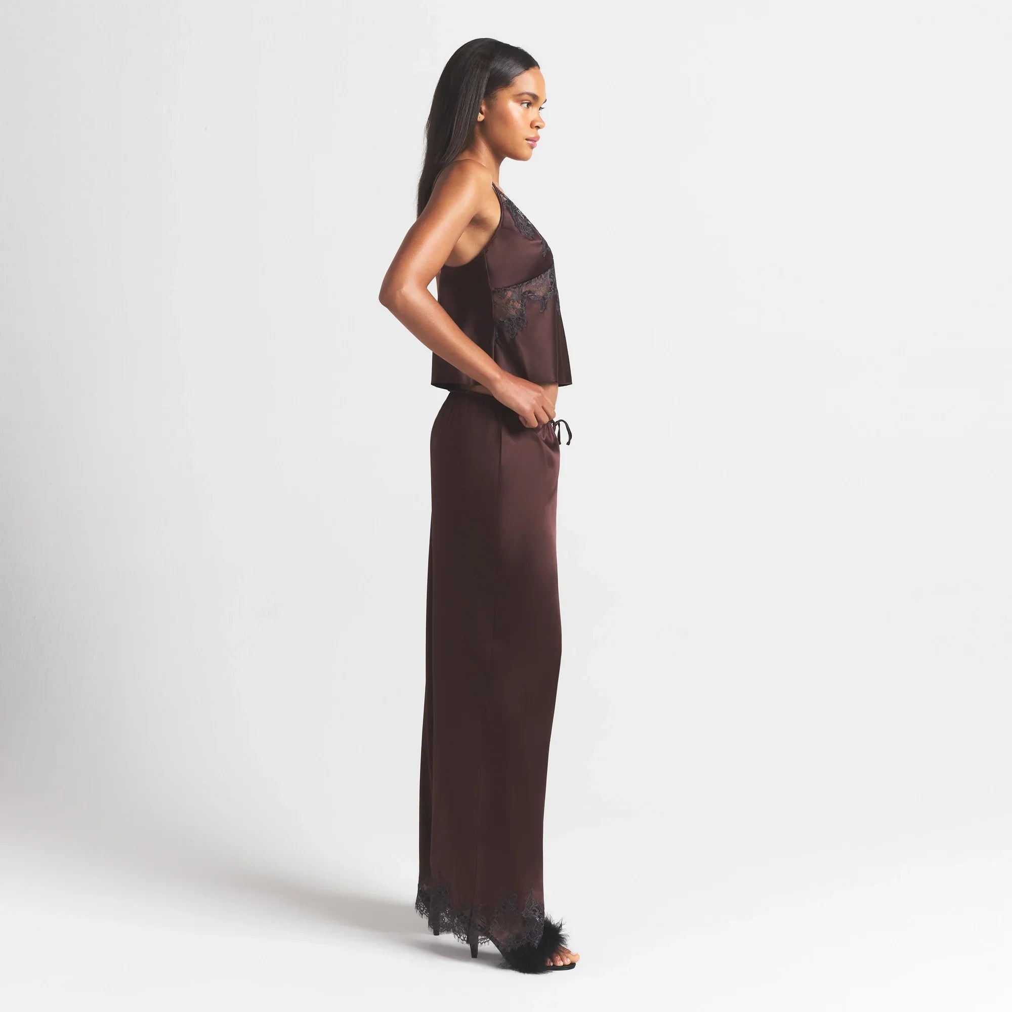 SKIMS SILK LACE STRAIGHT LEG PANT | ESPRESSO CONTRAST