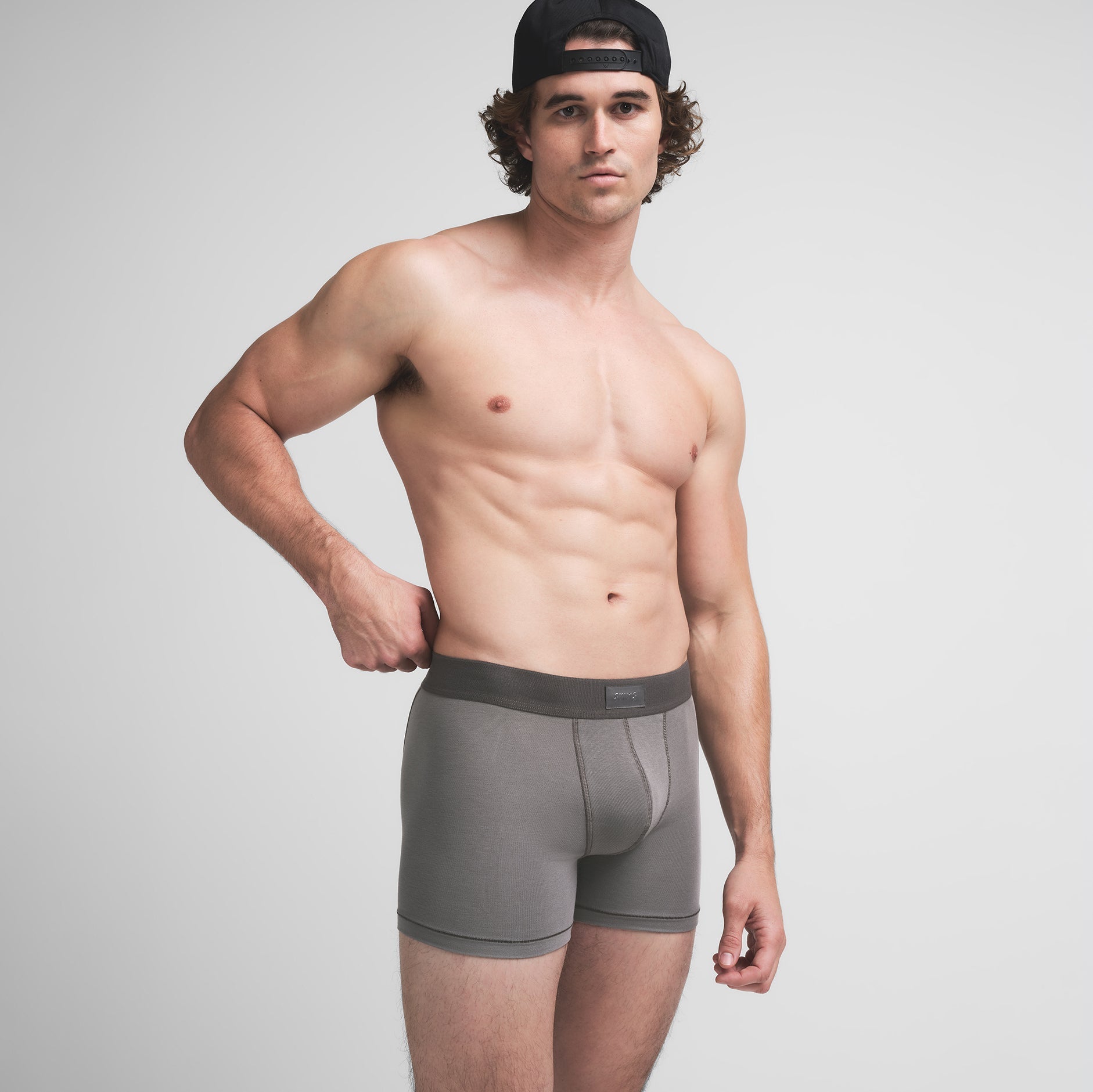 SKIMS COTTON MENS 3″ BOXER BRIEF | WASHED GUNMETAL