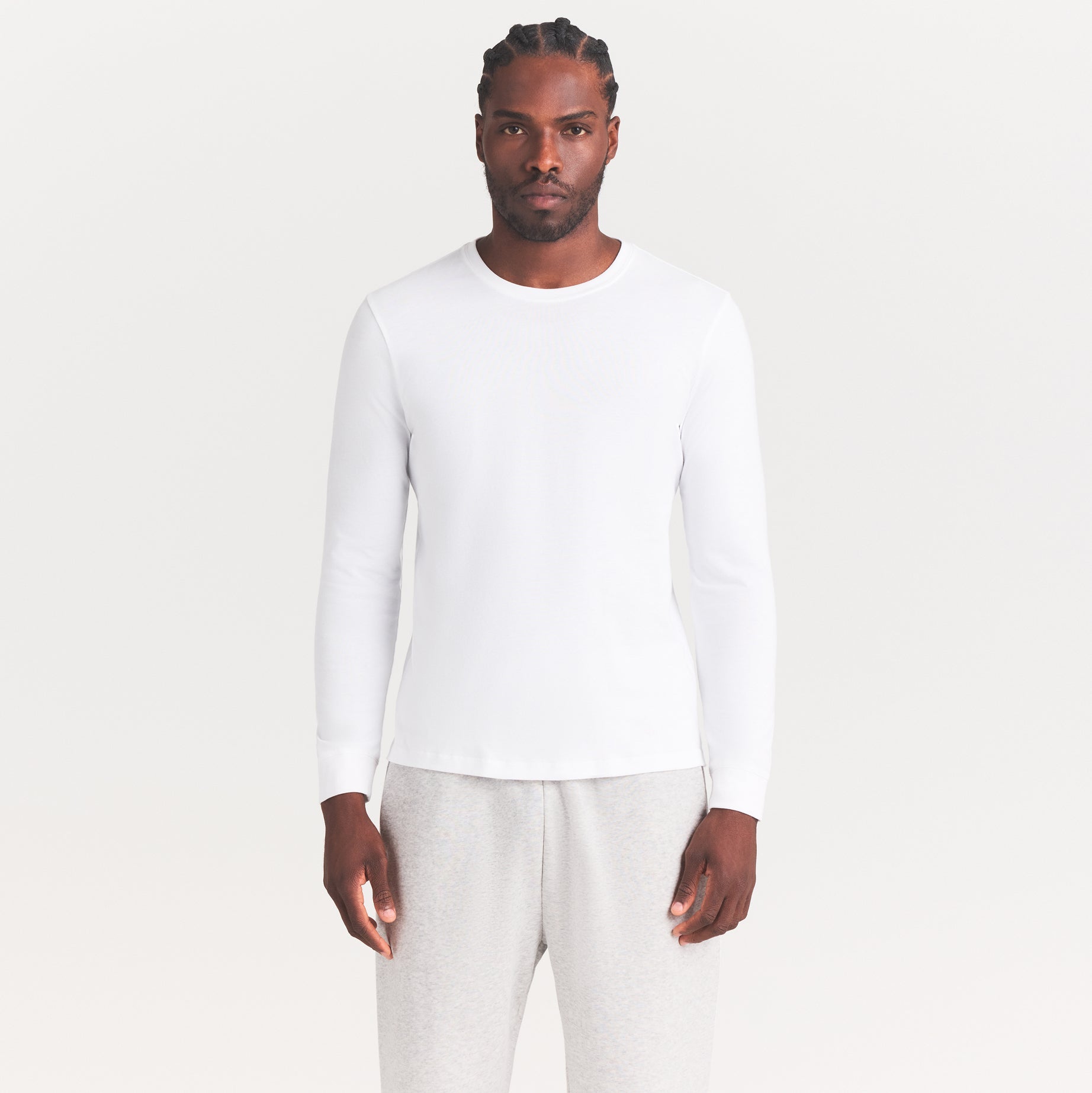 SKIMS COTTON MENS CLASSIC LONG SLEEVE T-SHIRT | CHALK