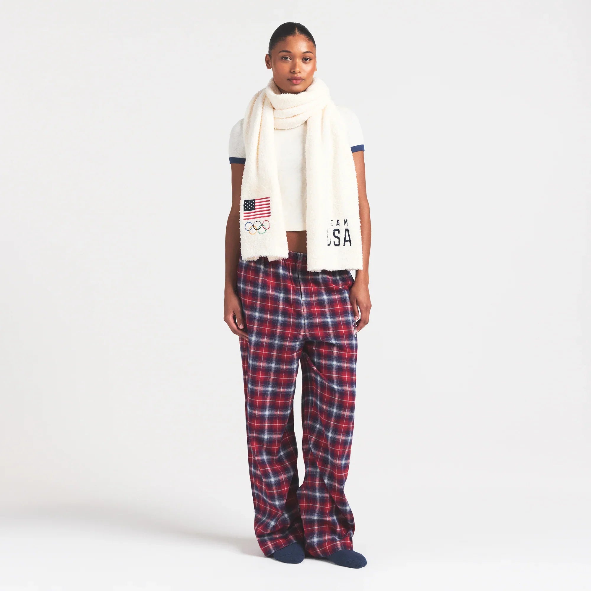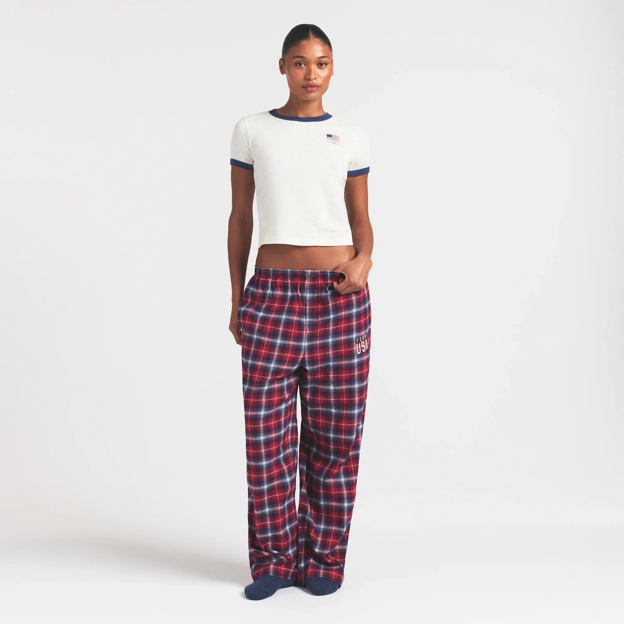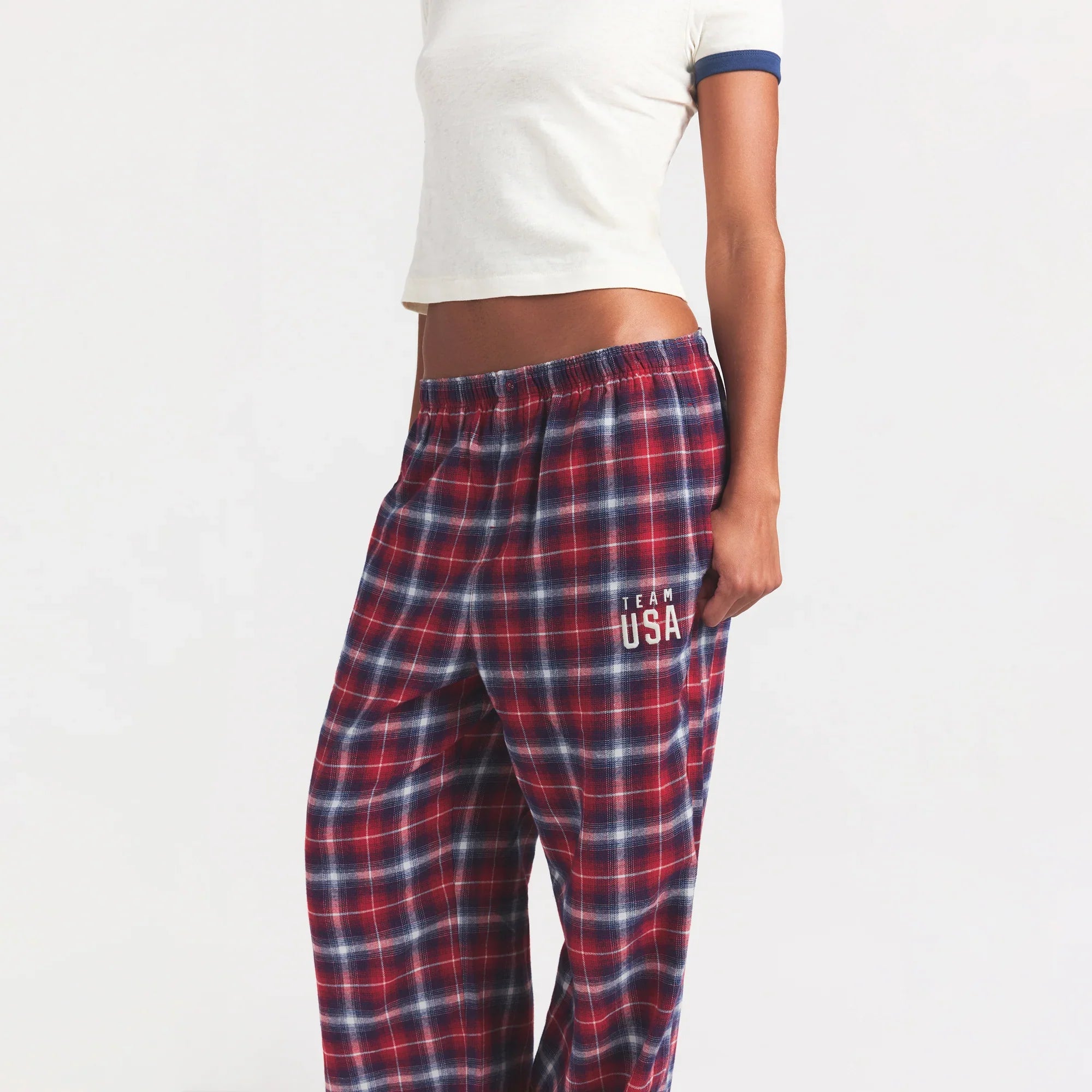 SKIMS FOR TEAM USA FLANNEL SLEEP OLYMPIC PANT | RED PLAID