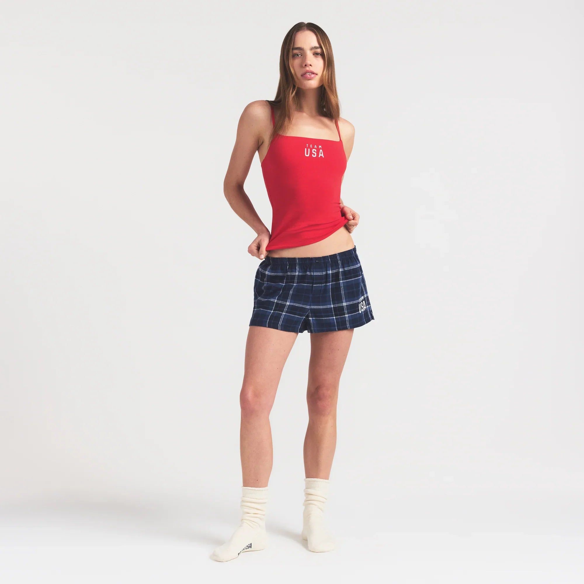 SKIMS FOR TEAM USA FLANNEL SLEEP OLYMPIC SHORT | NAVY PLAID