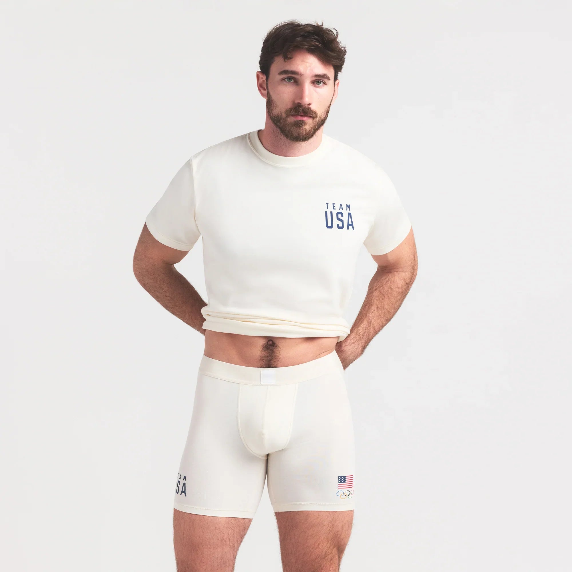 SKIMS FOR TEAM USA SKIMS COTTON MENS OLYMPIC 5″ BOXER BRIEF | ECRU