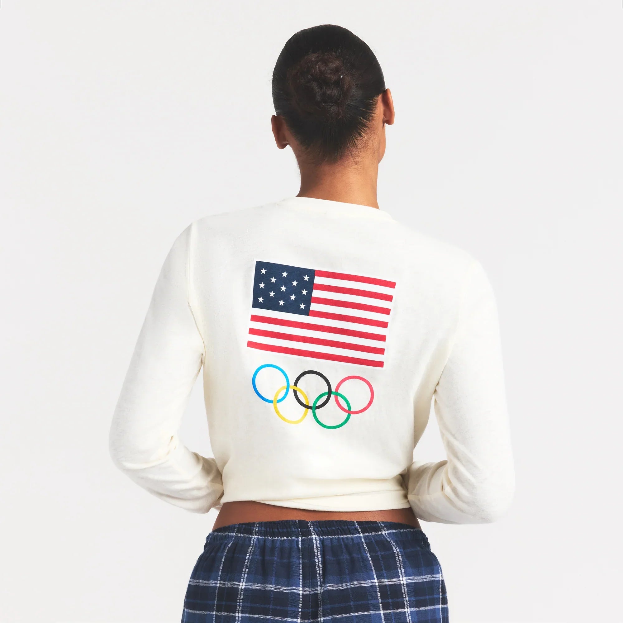 SKIMS FOR TEAM USA WORN IN JERSEY OLYMPIC LONG SLEEVE T-SHIRT | ECRU