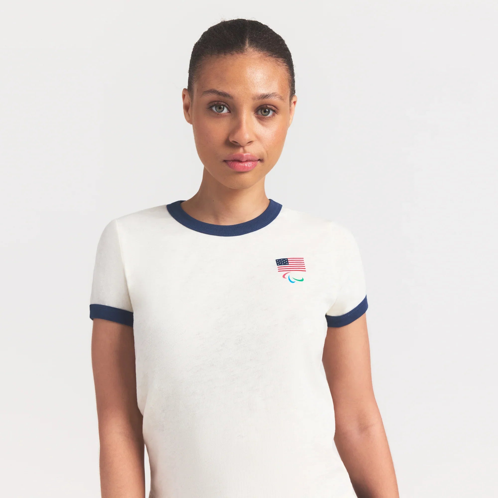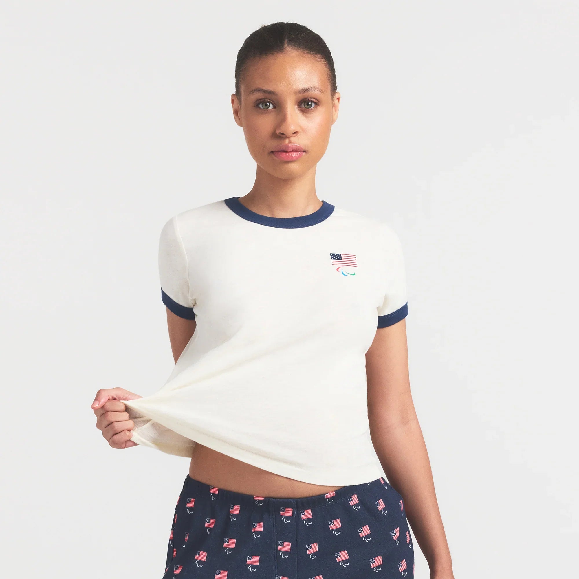 SKIMS FOR TEAM USA WORN IN JERSEY PARALYMPIC SHRUNKEN T-SHIRT | ECRU