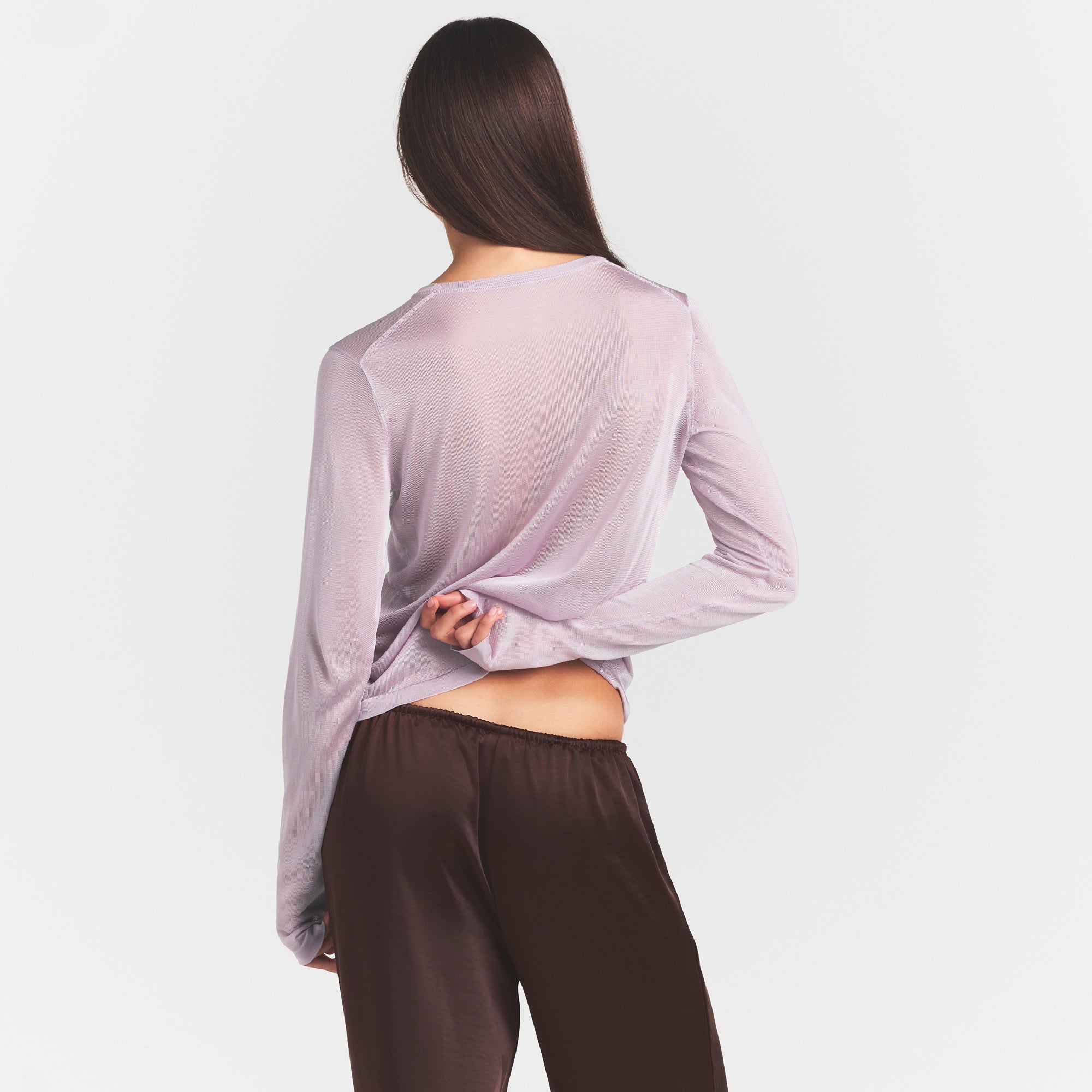 SKIMS SLINKY KNIT CREW NECK LONG SLEEVE TOP | IRIS MICA