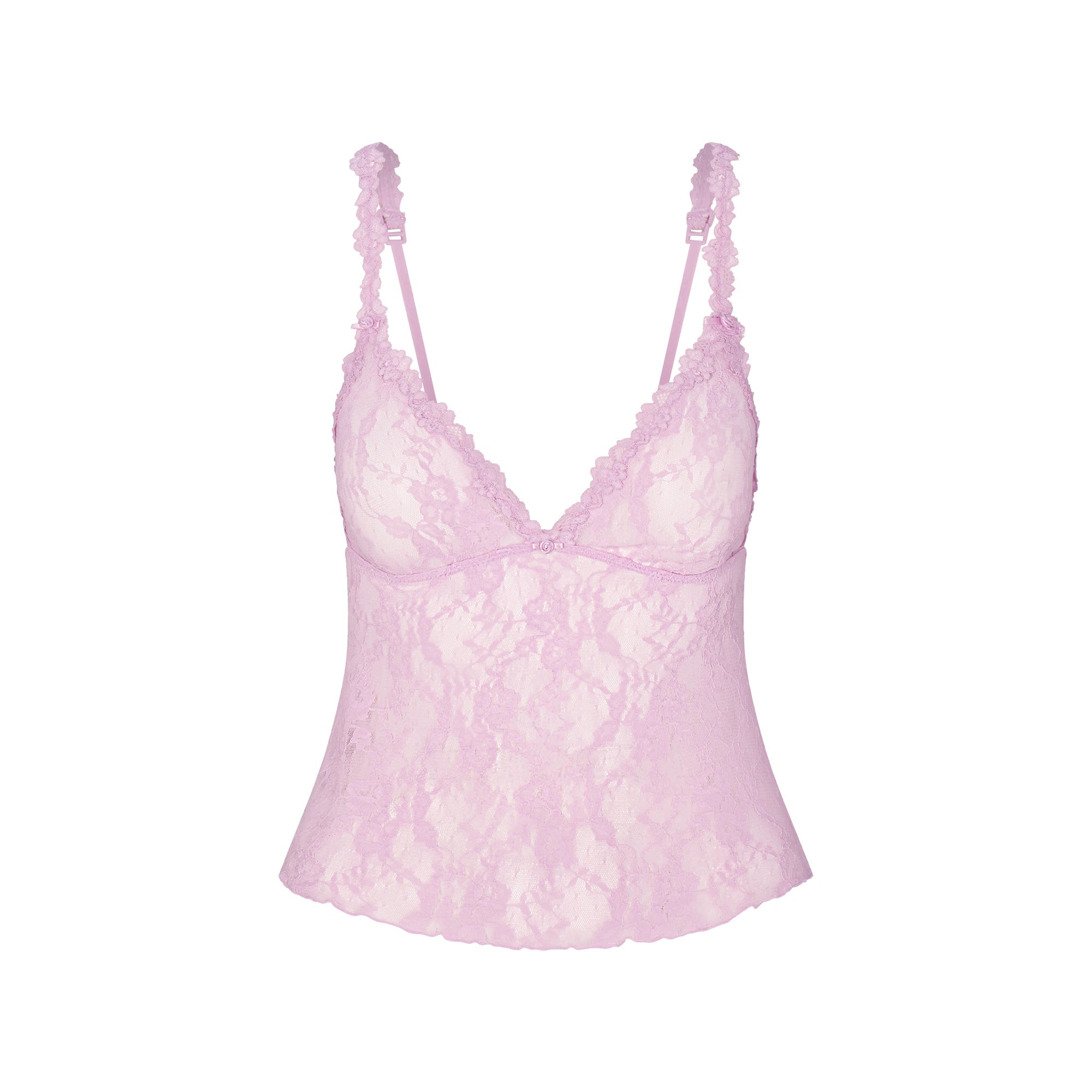 SKIMS STRETCH LACE TRIANGLE CAMI AND SHORT SET | BABY PINK