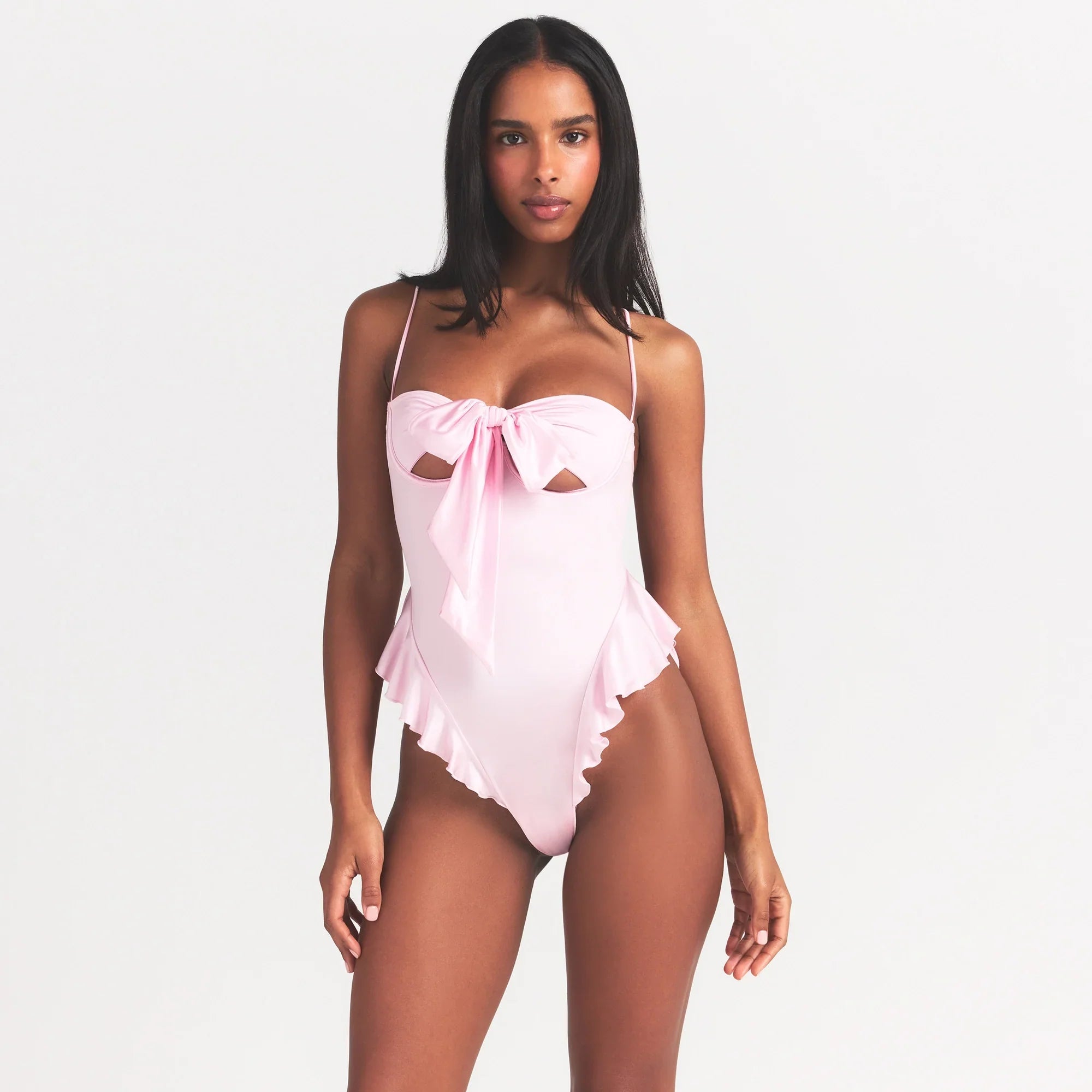 SKIMS STRETCH SATIN TIE FRONT TEDDY | HALITE