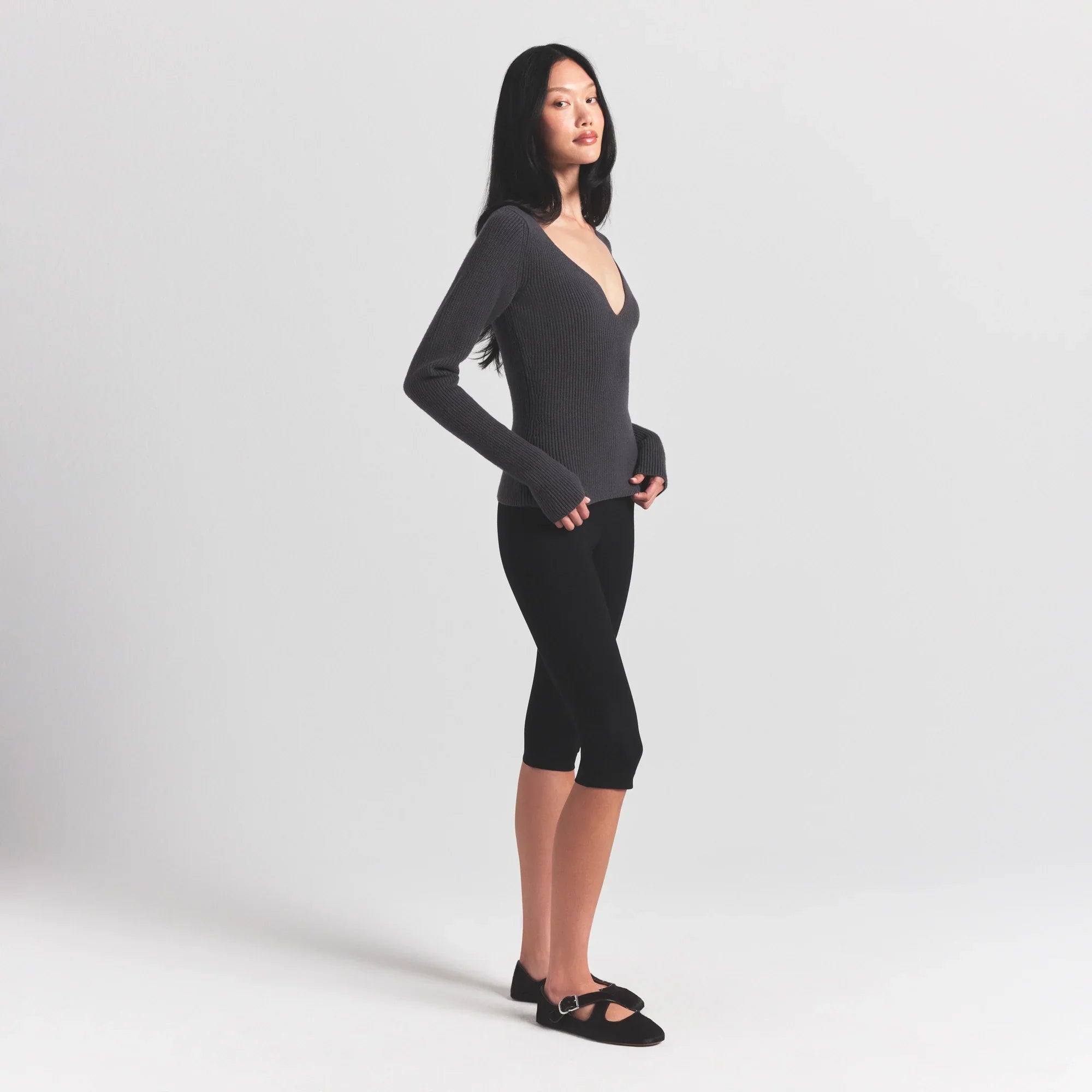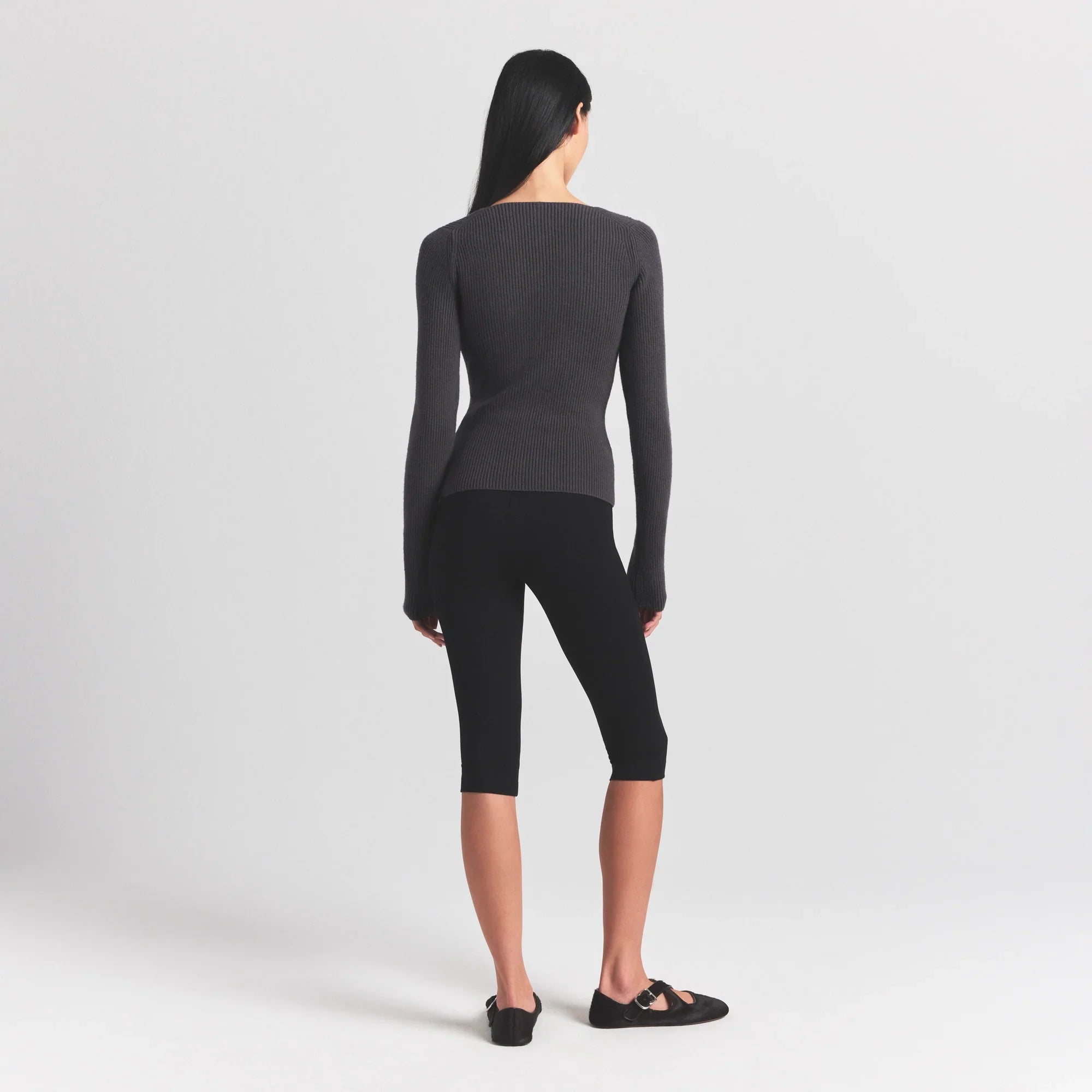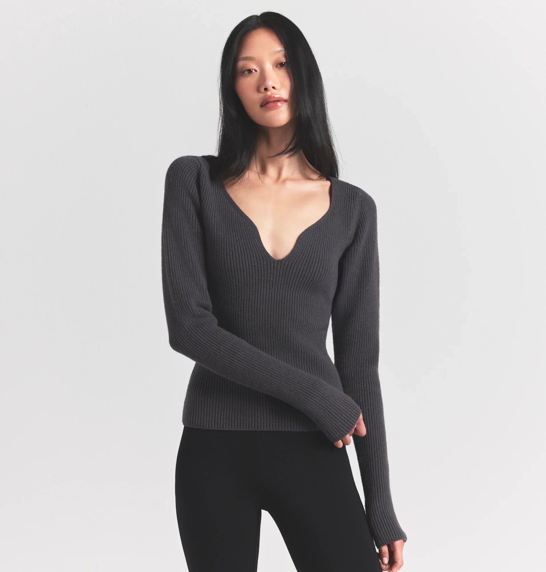 SKIMS SWEATER KNITS RIBBED LONG SLEEVE TOP | ASH
