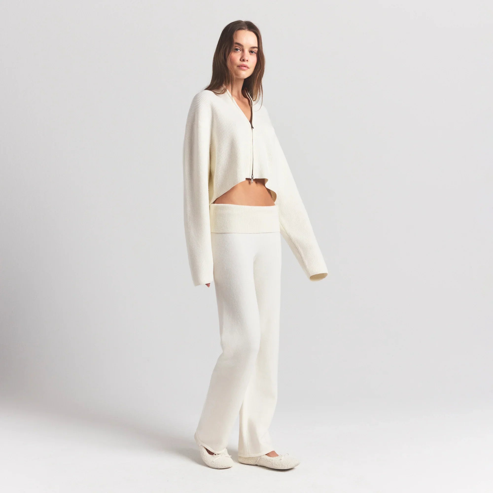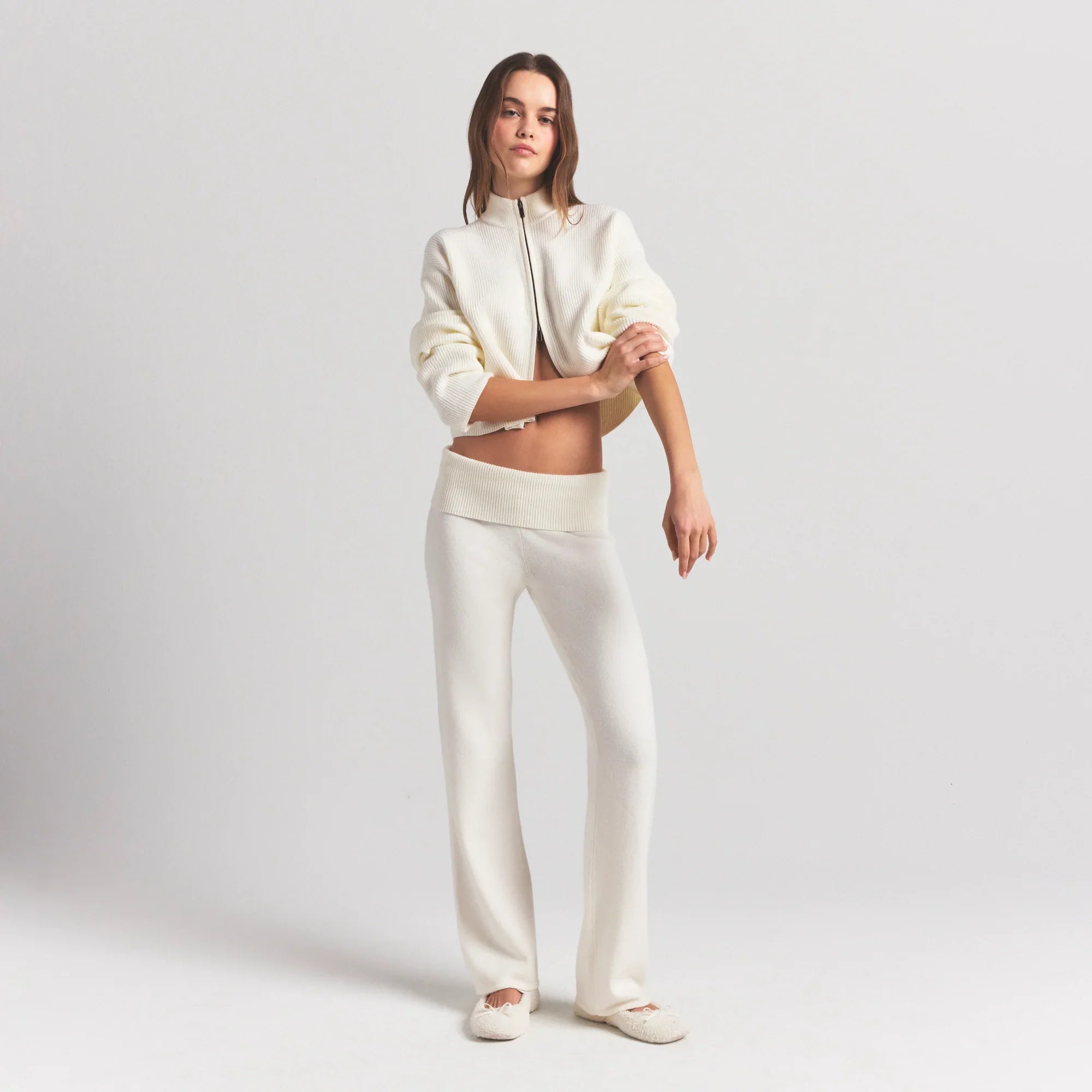 SKIMS SWEATER KNITS RIBBED MOCK NECK ZIP UP | IVORY