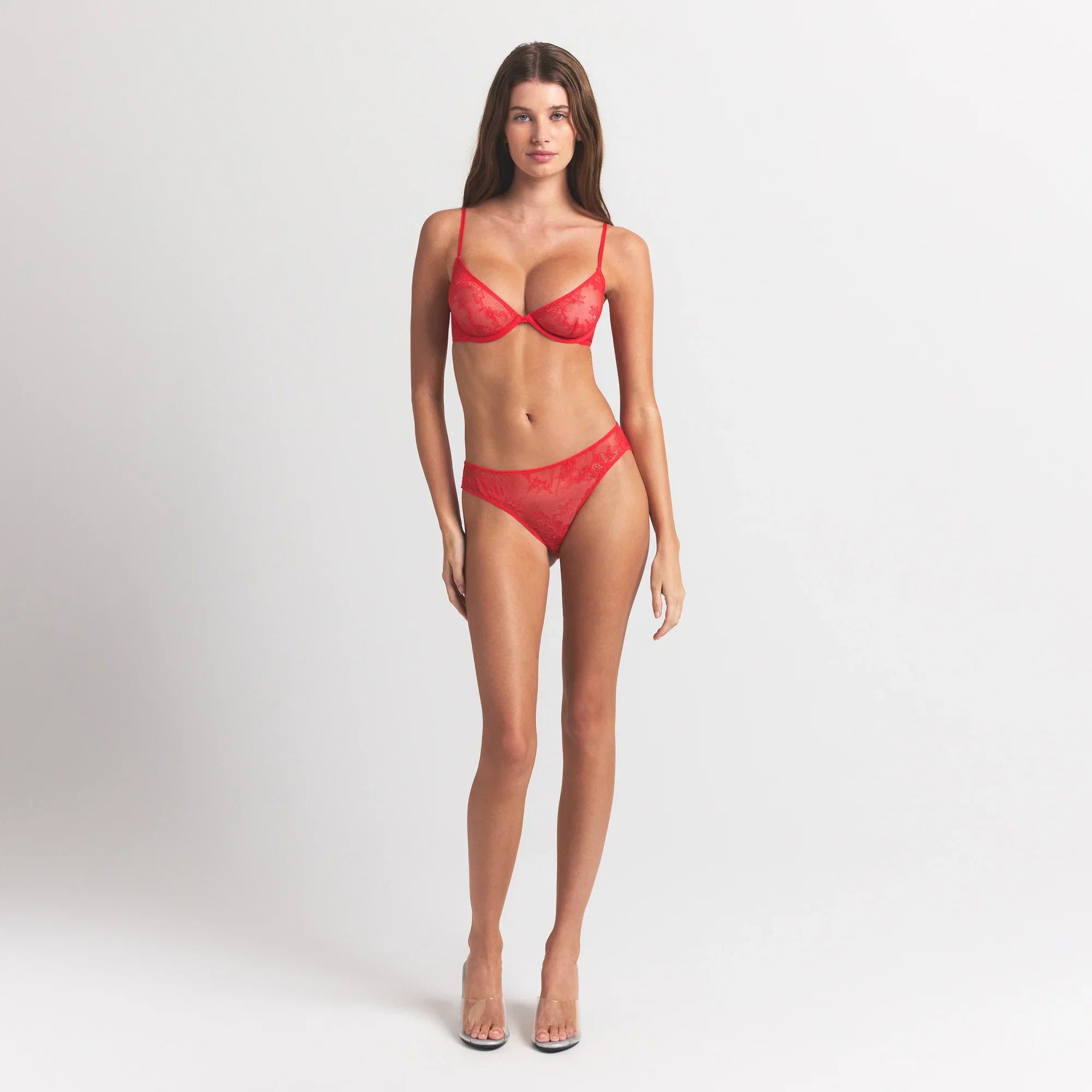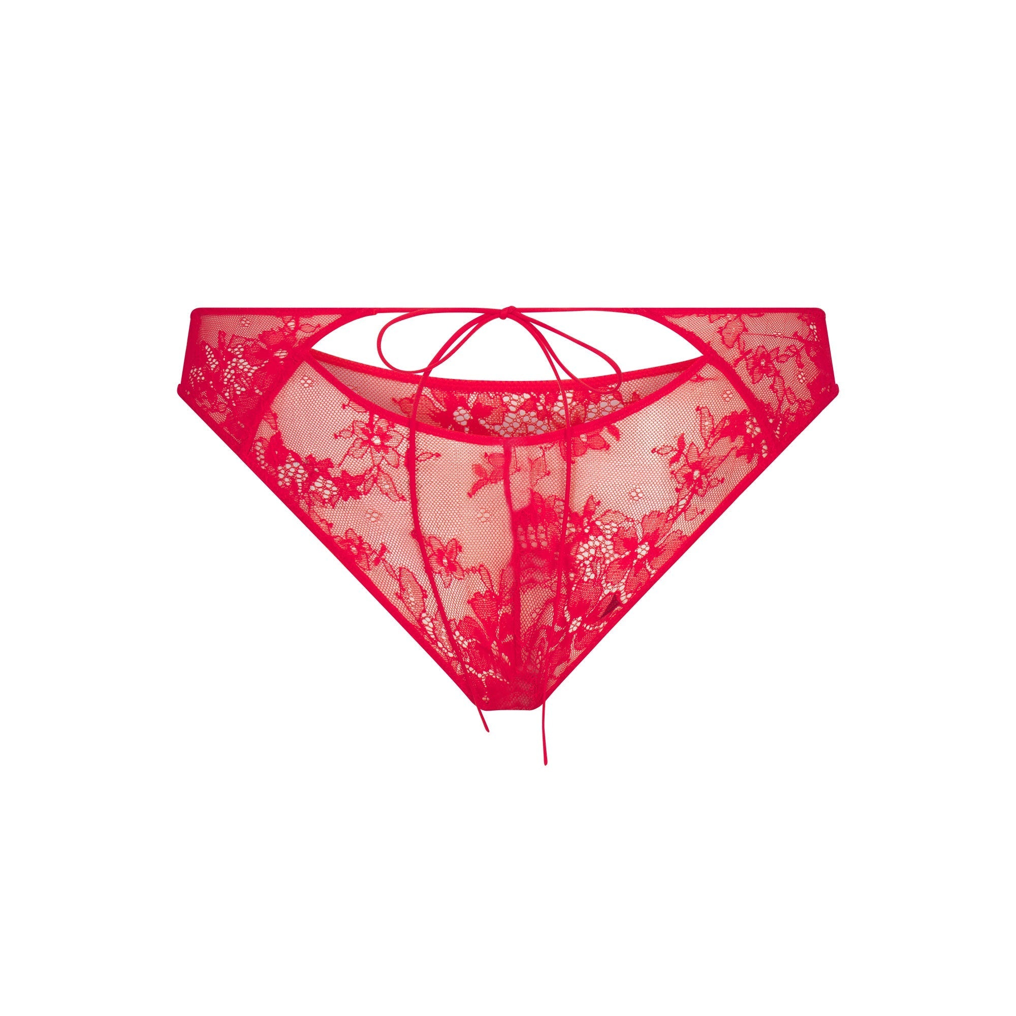 SKIMS ULTRA FINE LACE PEEK-A-BOO BIKINI | RUBY