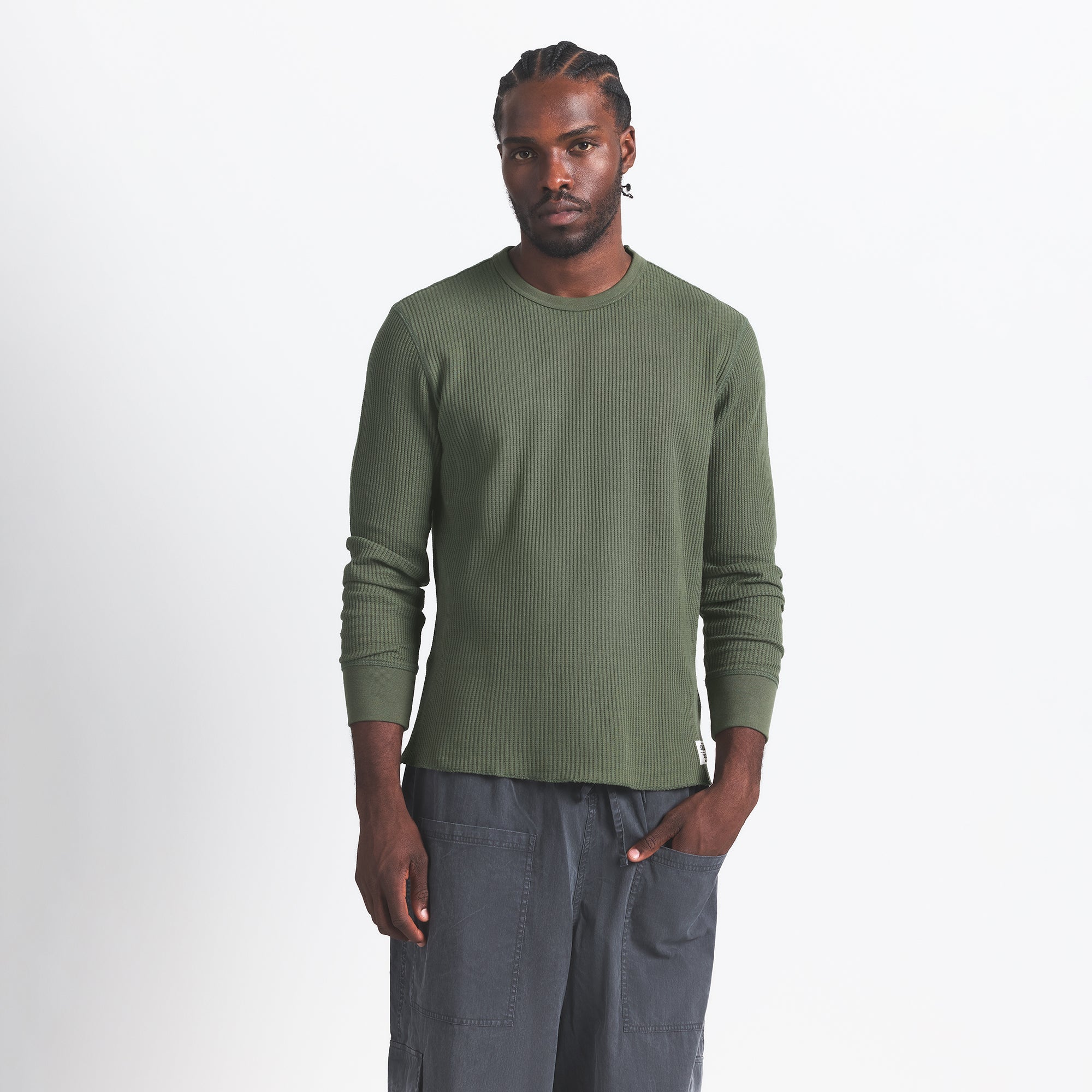 SKIMS WAFFLE MENS LONG SLEEVE TOP | MILITARY GREEN