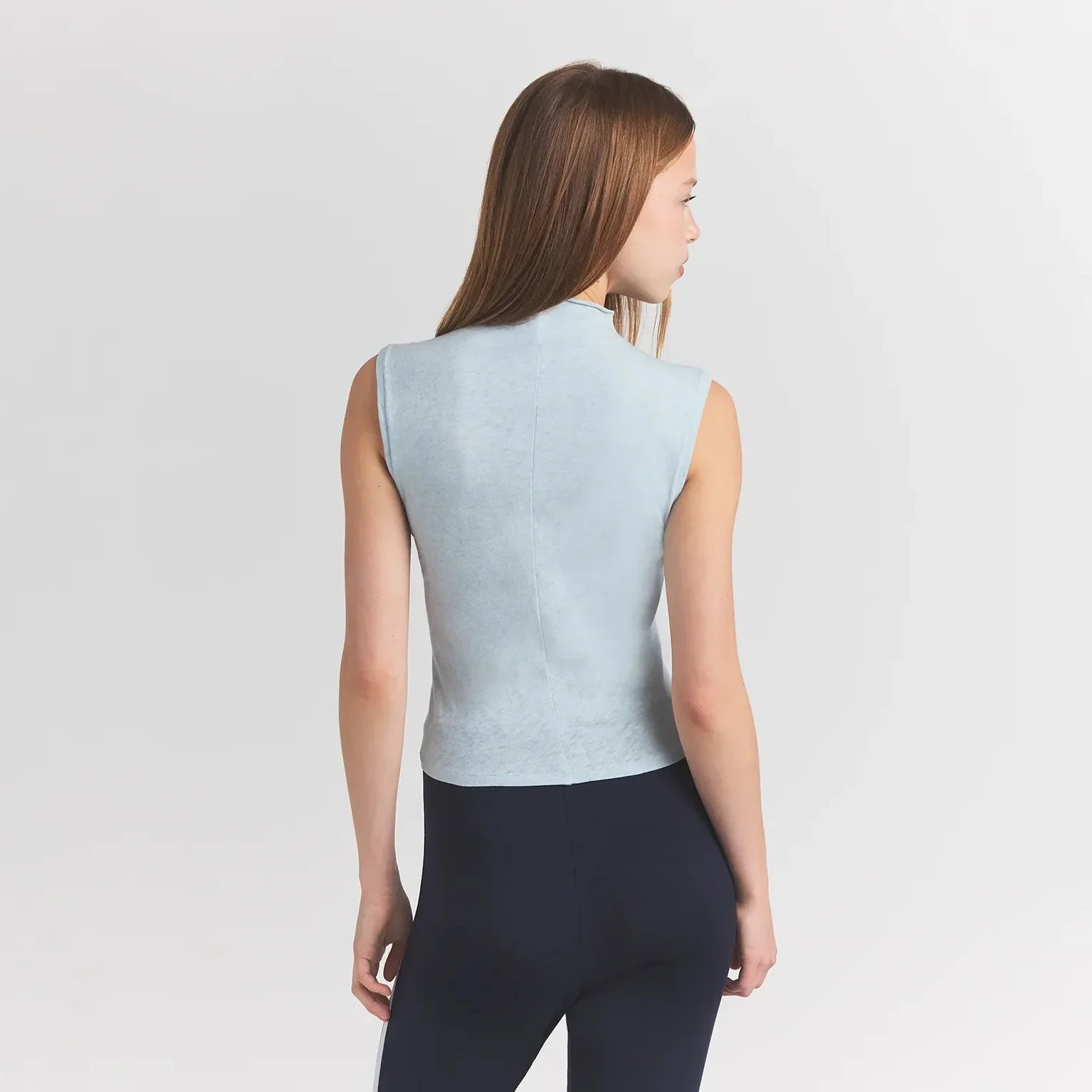 Lived-in konforu şık bir yüksek yaka siluetiyle buluşturan bu kolsuz bluz, günlük şıklığınızı tamamlayacak. Yumuşak, nefes alabilen %100 pamuk kumaşıyla tasarlanmıştır.