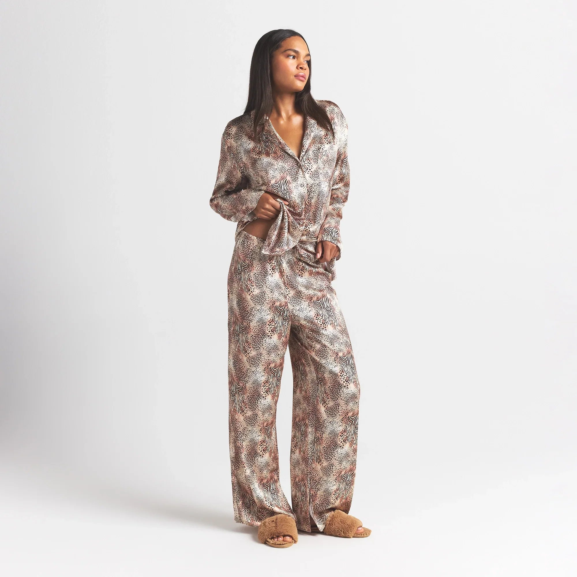 SKIMS WOVEN SHINE LONG SLEEP SET | SAND MINI MULTI ANIMAL